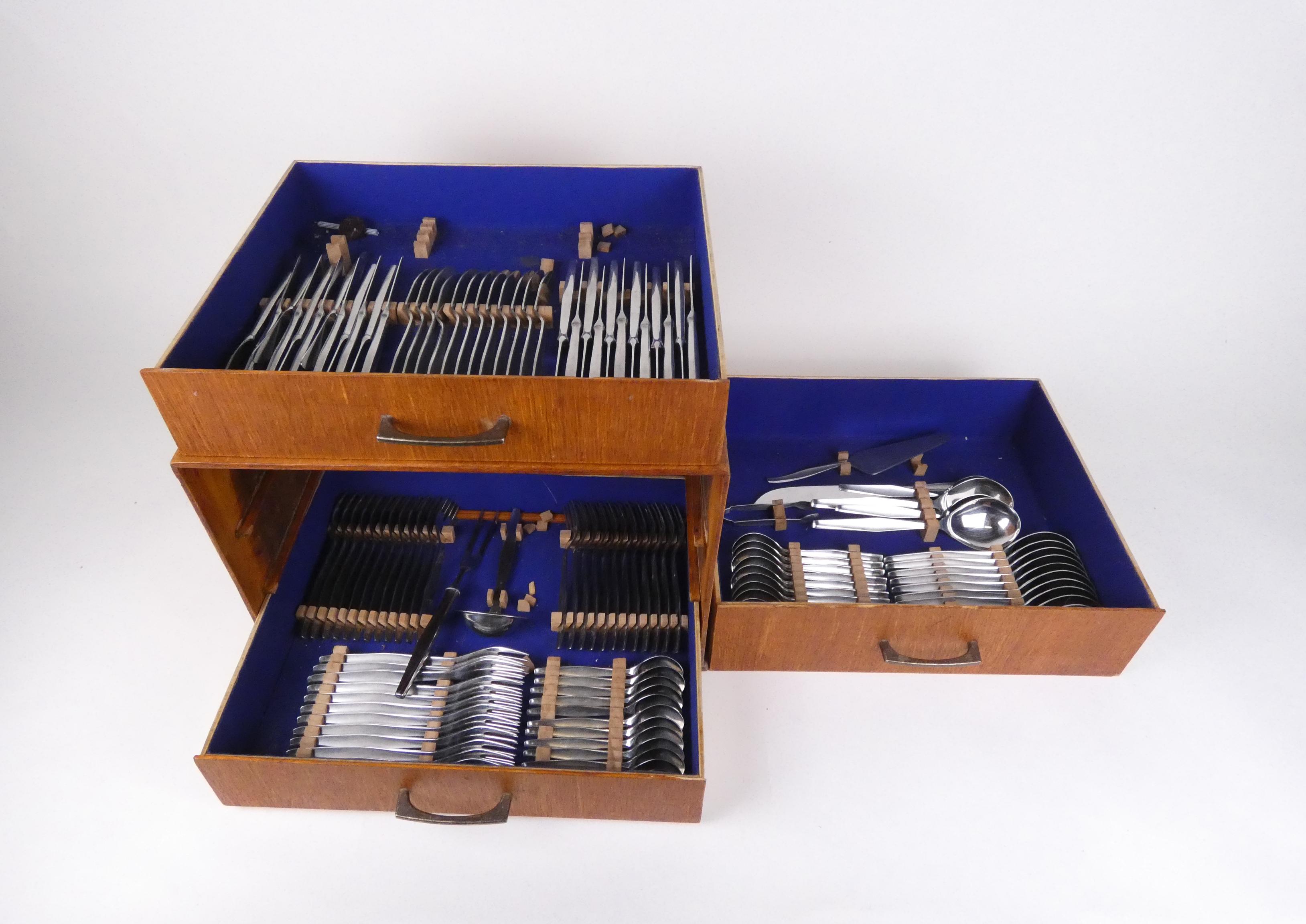 Argenterie: partie de ménagère 12 couverts Vintage Solingen en métal argenté dans son coffret (105pcs) (usures d'usage)