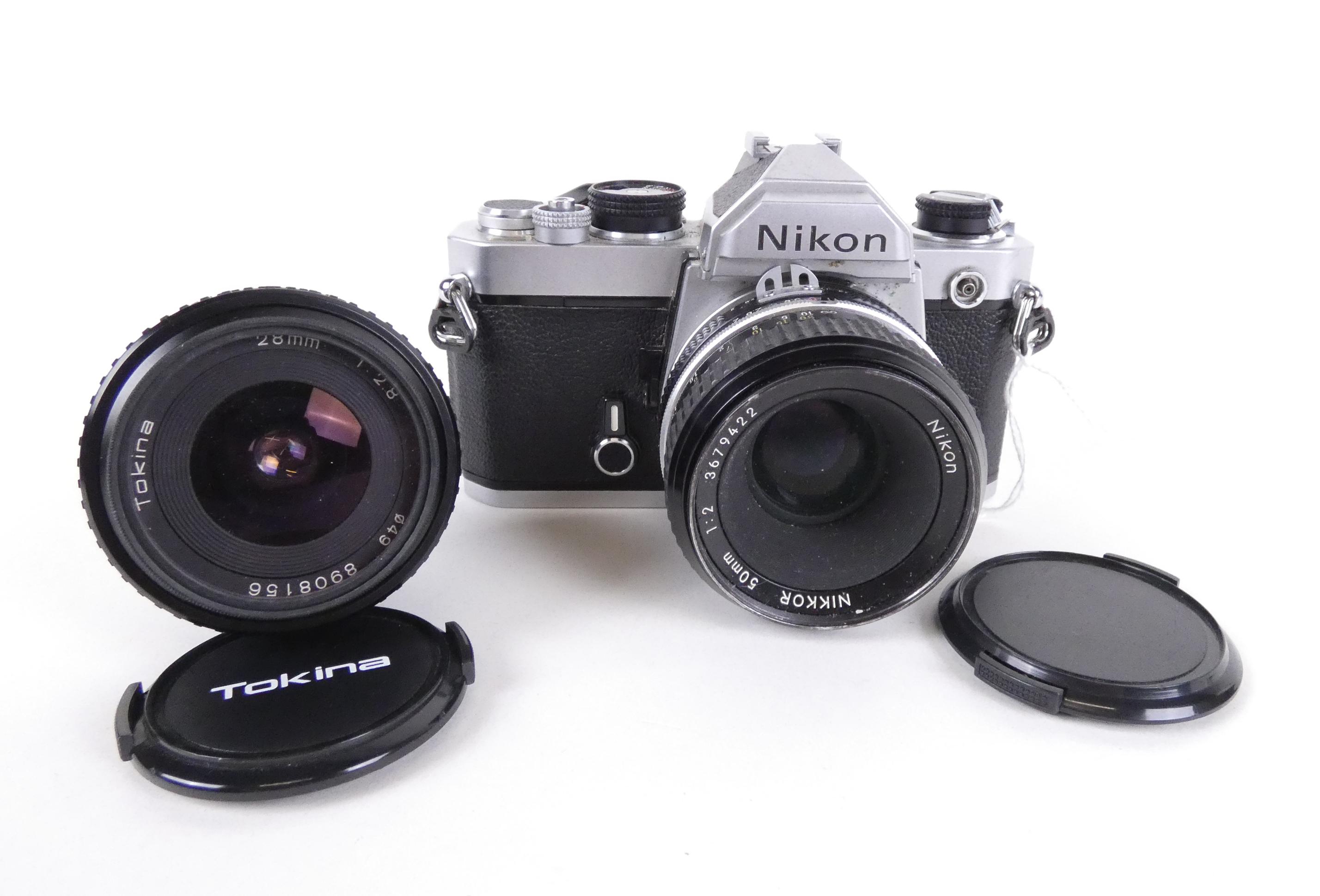 Objet: Appareil photo NIKON FM Argentique avec optique 1:2 50mm + 1 objectif Tokina 1:2.8 28mm
