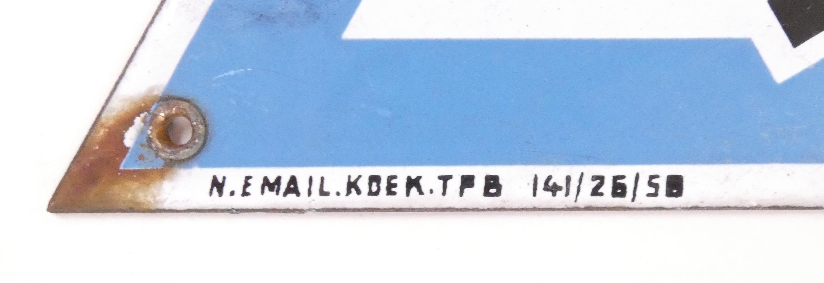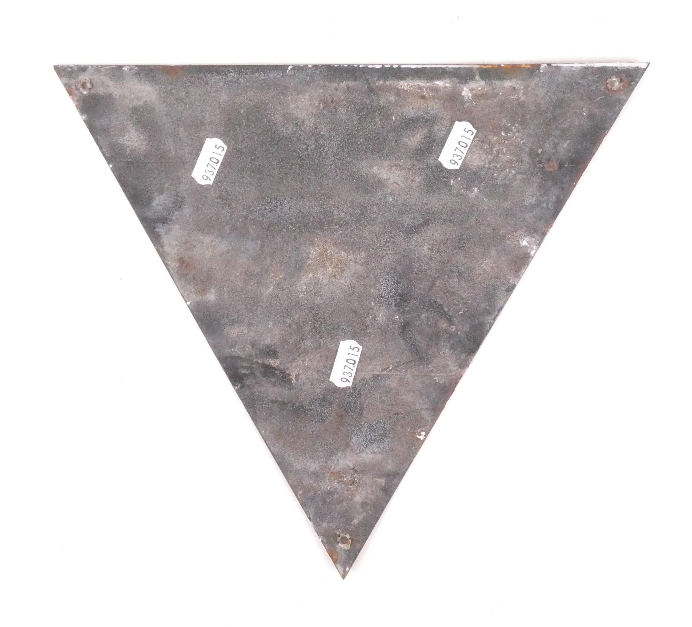 Objet: Plaque publicitaire émaillée triangulaire -Machine à Traire FN ici- (pt traces oxy.) 31,5x27cm