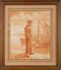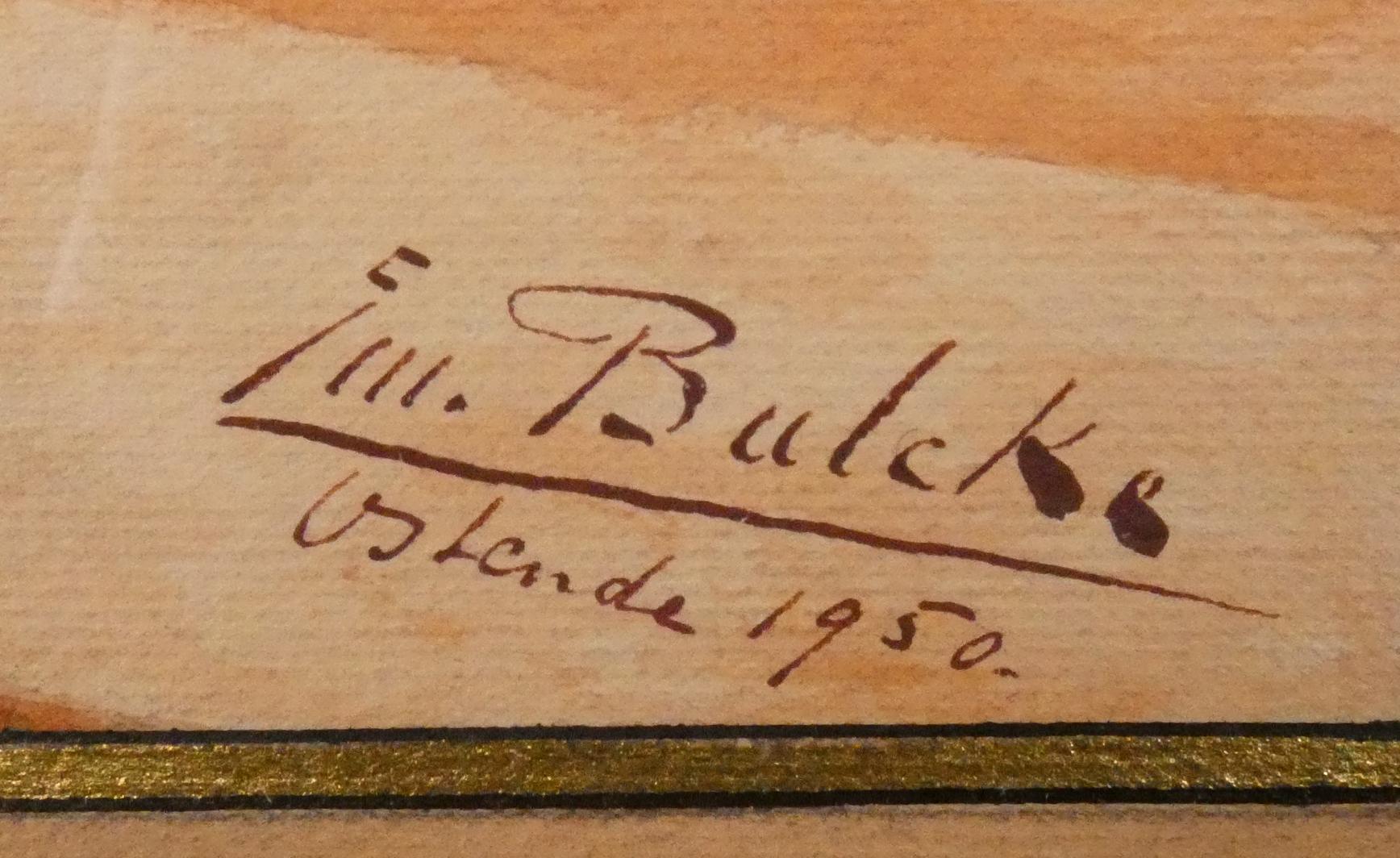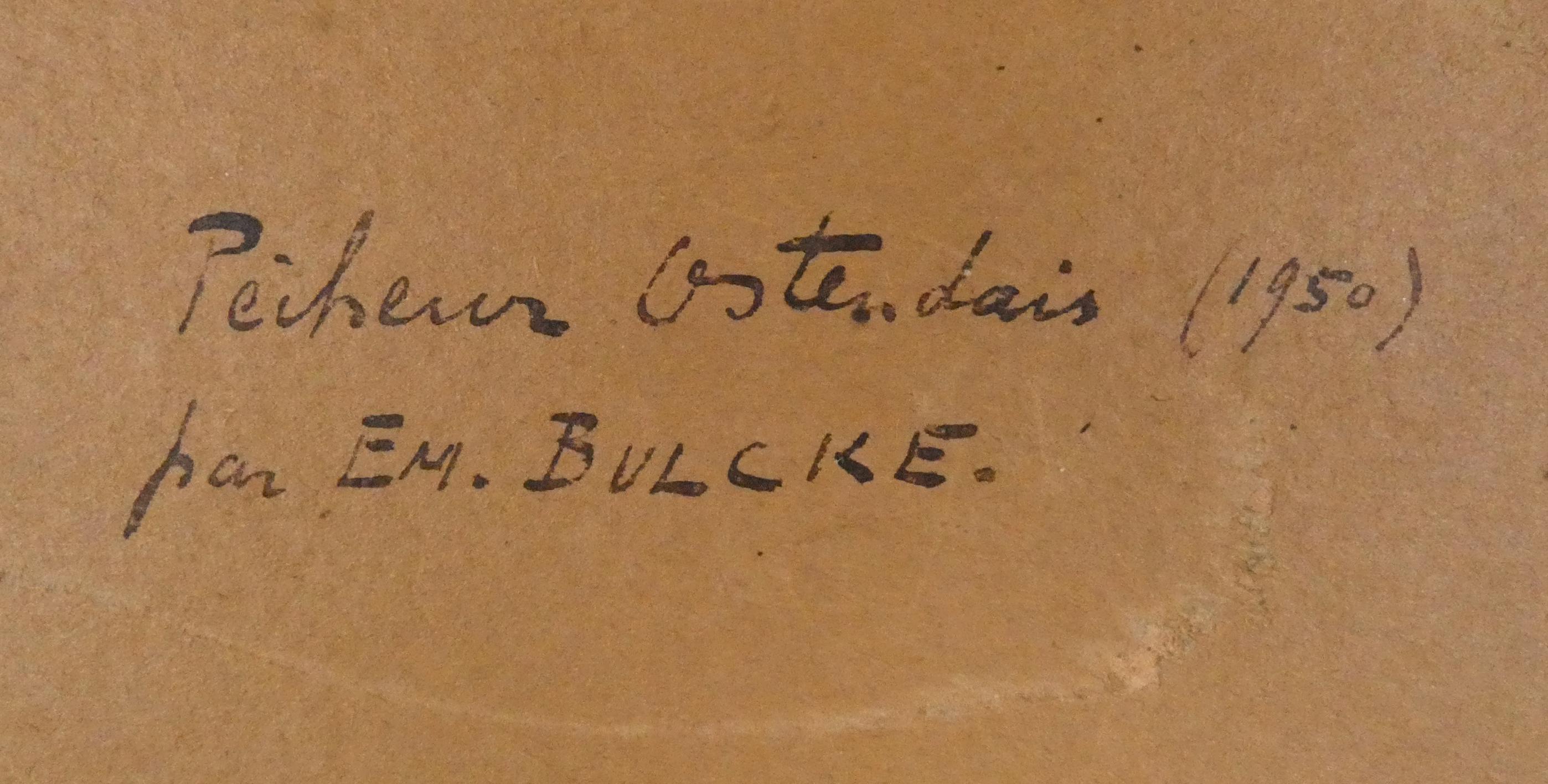 Tableau: Lavis -Pécheur Islandais- daté 1950 signé *BULCKE E.* (Emile) (1875, 1963) 28x23cm cadre sous verre