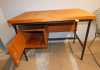 Meuble : Bureau Vintage en teck et monture en métal (usures d'usage) 1 caisson et sa chaise