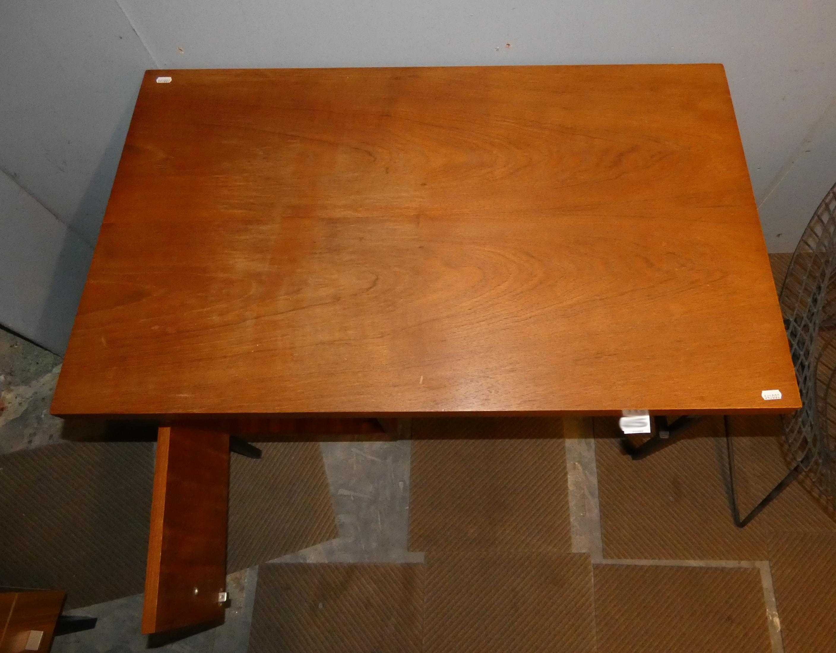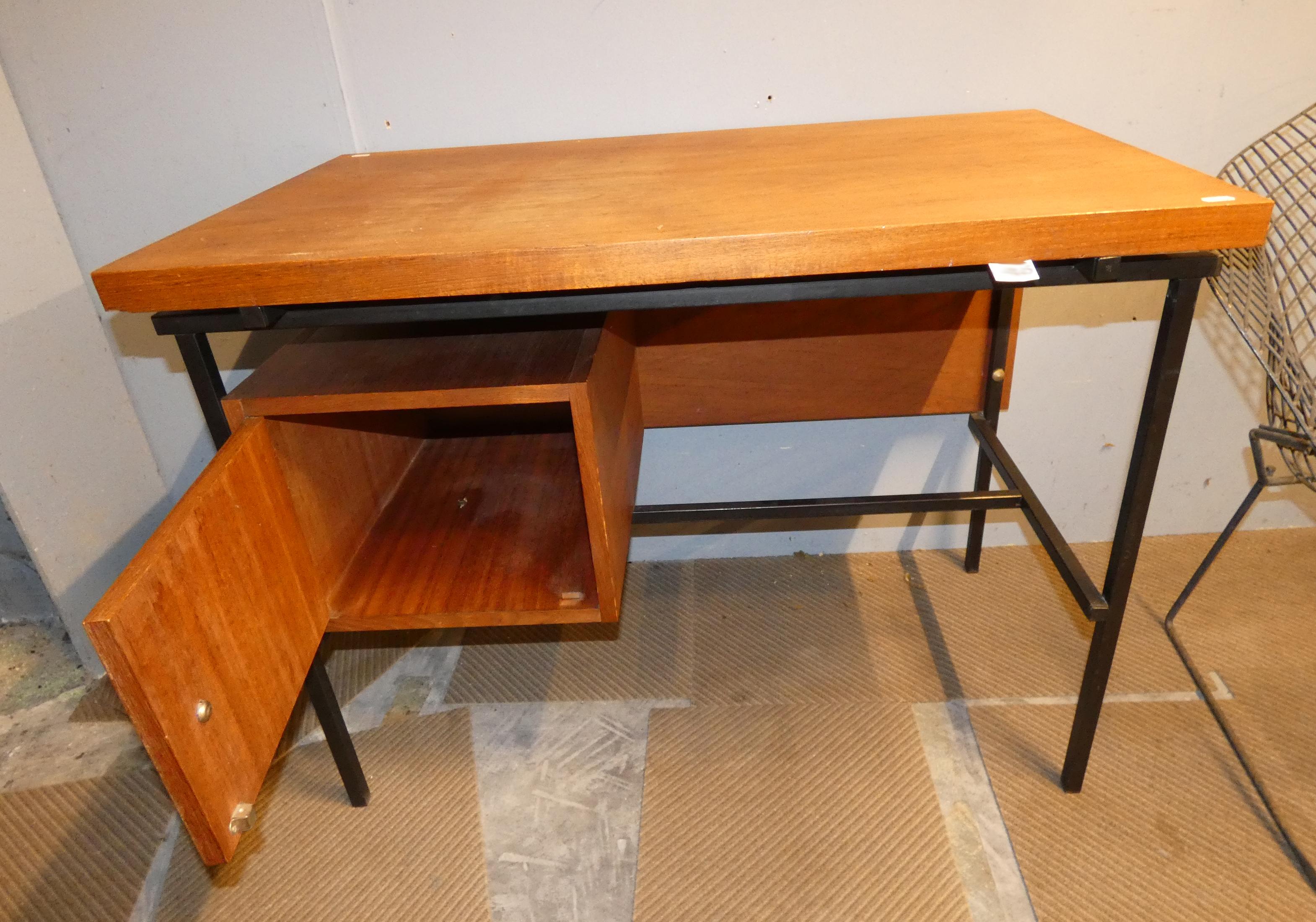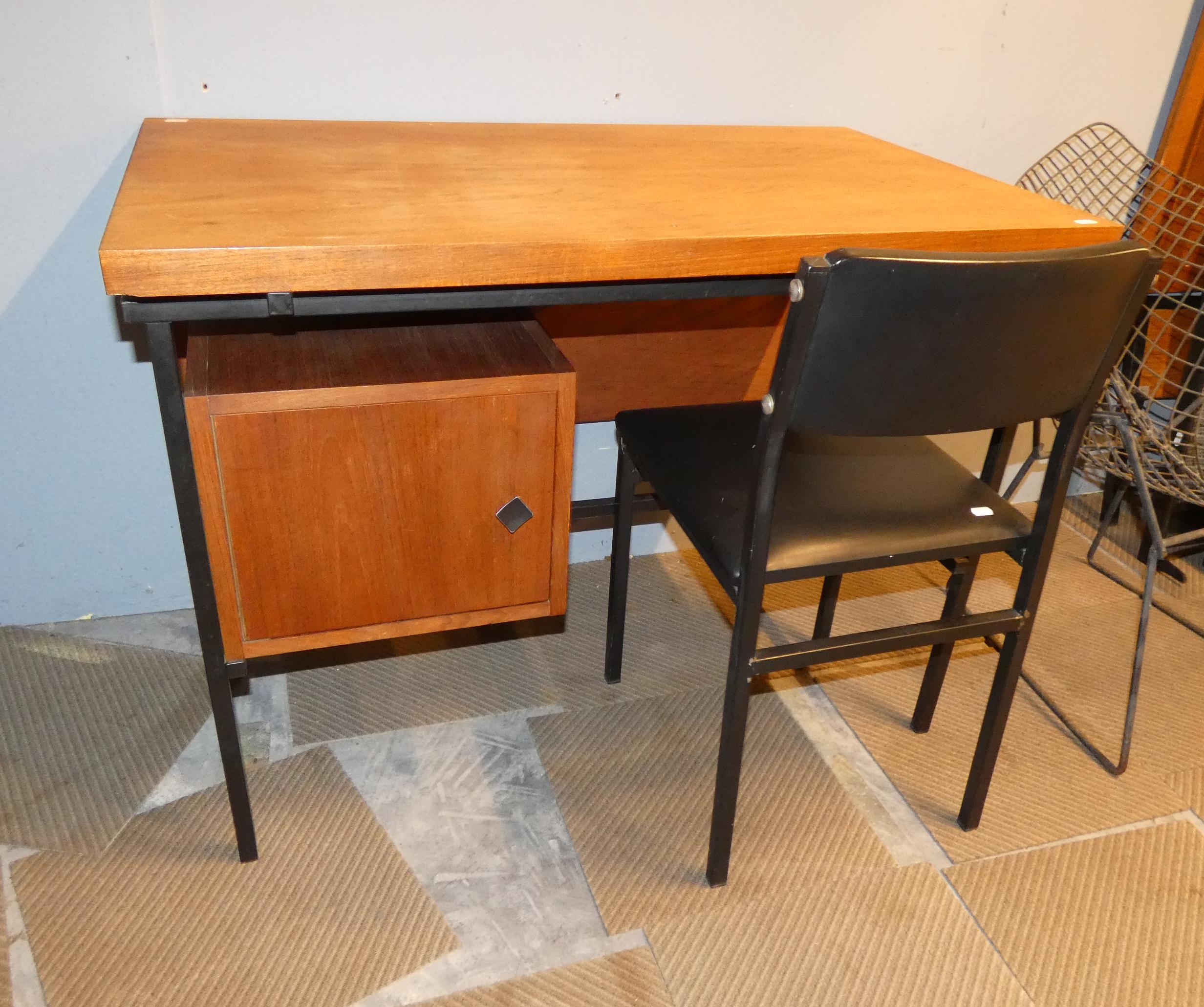 Meuble: Bureau Vintage en teck et monture en métal (usures d'usage) 1 caisson 75x100x60cm et sa chaise