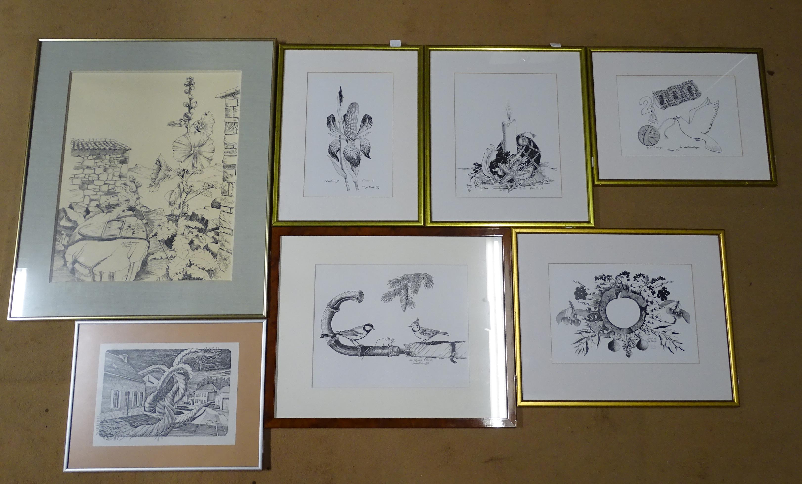 Tableau: 7 tirages signés *ROUGE P.* (Paul) (1927) ds cadres s/v