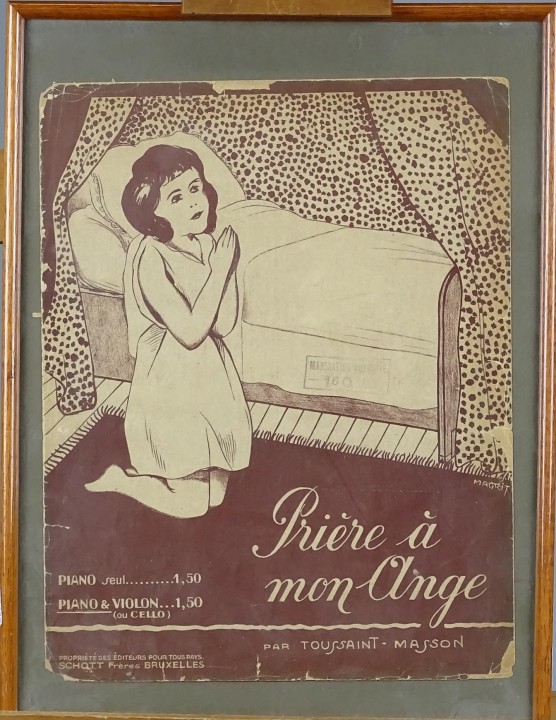 Estampe: Zincographie partitions musicales complètes -Prière à mon ange- signé MAGRIT *MAGRITTE R.* (René) (1888, 1967) Schott Frère Bx Ed. cadre s/v (usure)