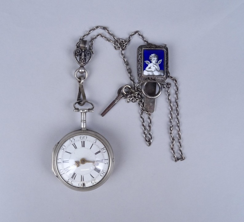 Bijou: Montre de gousset oignon en argent poinçon Paris 800 mouvement à coq signé LE ROY Paris 1ère moitié 19eS (en état avec clé et chaine)
