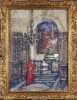 Tableau: dessin aquarelle -Le baptistère- signé *GEUDENS A.* (Albert) (1869, 1949) 46x34cm cadre de style doré s/v