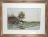 Tableau : dessin aquarelle - Paysage avec vaches - signé BAUFFE Victor