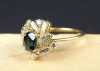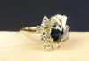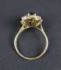 Bijou: Bague en or jaune 18K sertie en son centre d'un saphir d'env. 0,75cts (cp)entouré de 10 diamants ronds et 5 baguettes P: 5,7g TDD: 64