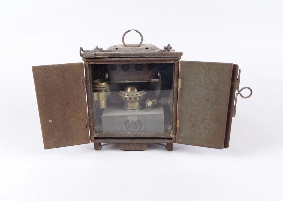 Militaria : Lanterne Allemande WW1 de tranchée Gebr. BING. A.G. Nurnberg avec accessoires (oxy) anse avec poignée en bois