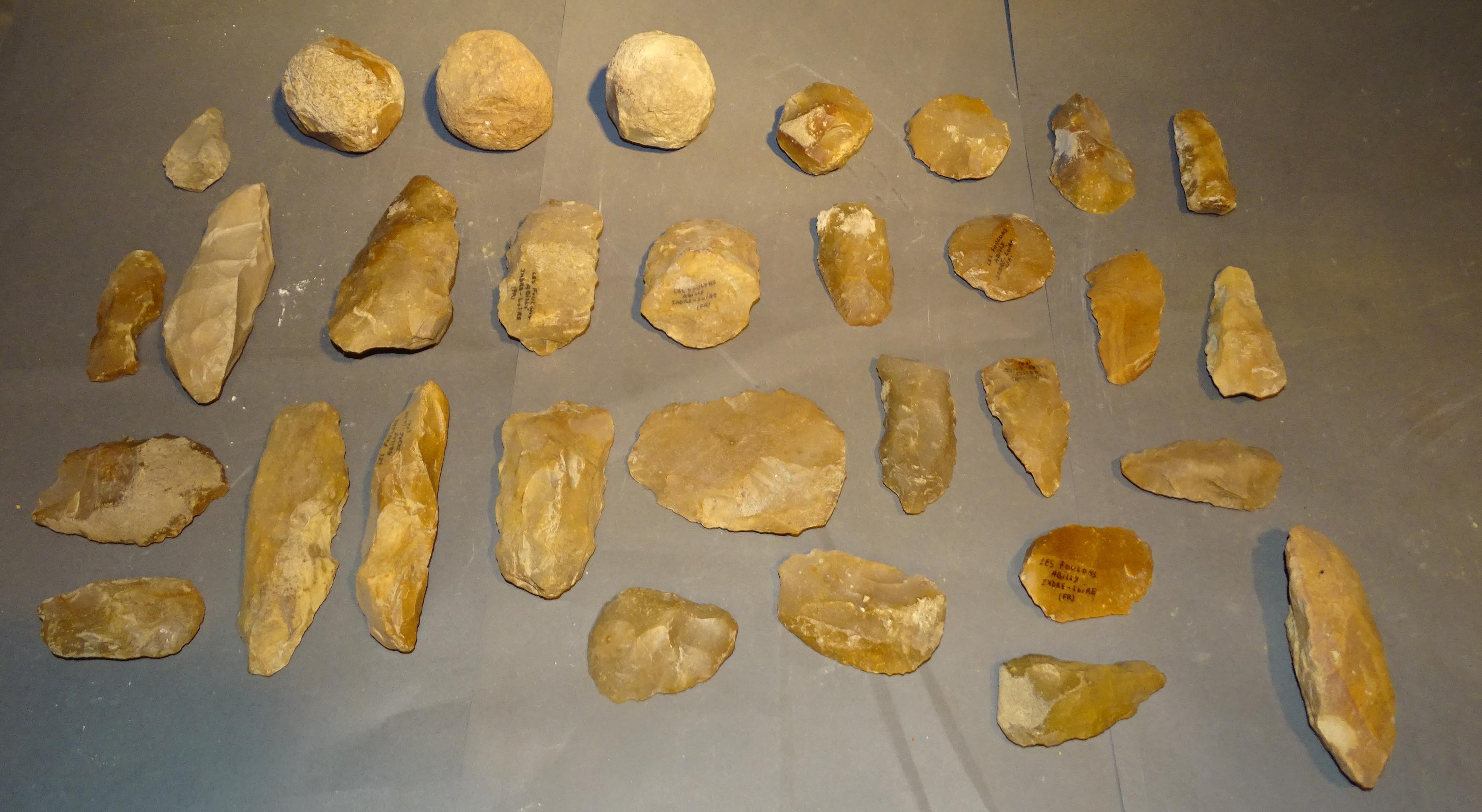 Objet: +/-31 silex taillés d'Abilly et Grand Pressigny (Indre-Loire France) époque néolithique comprenant percutteurs, haches, pics, éclats retouchés