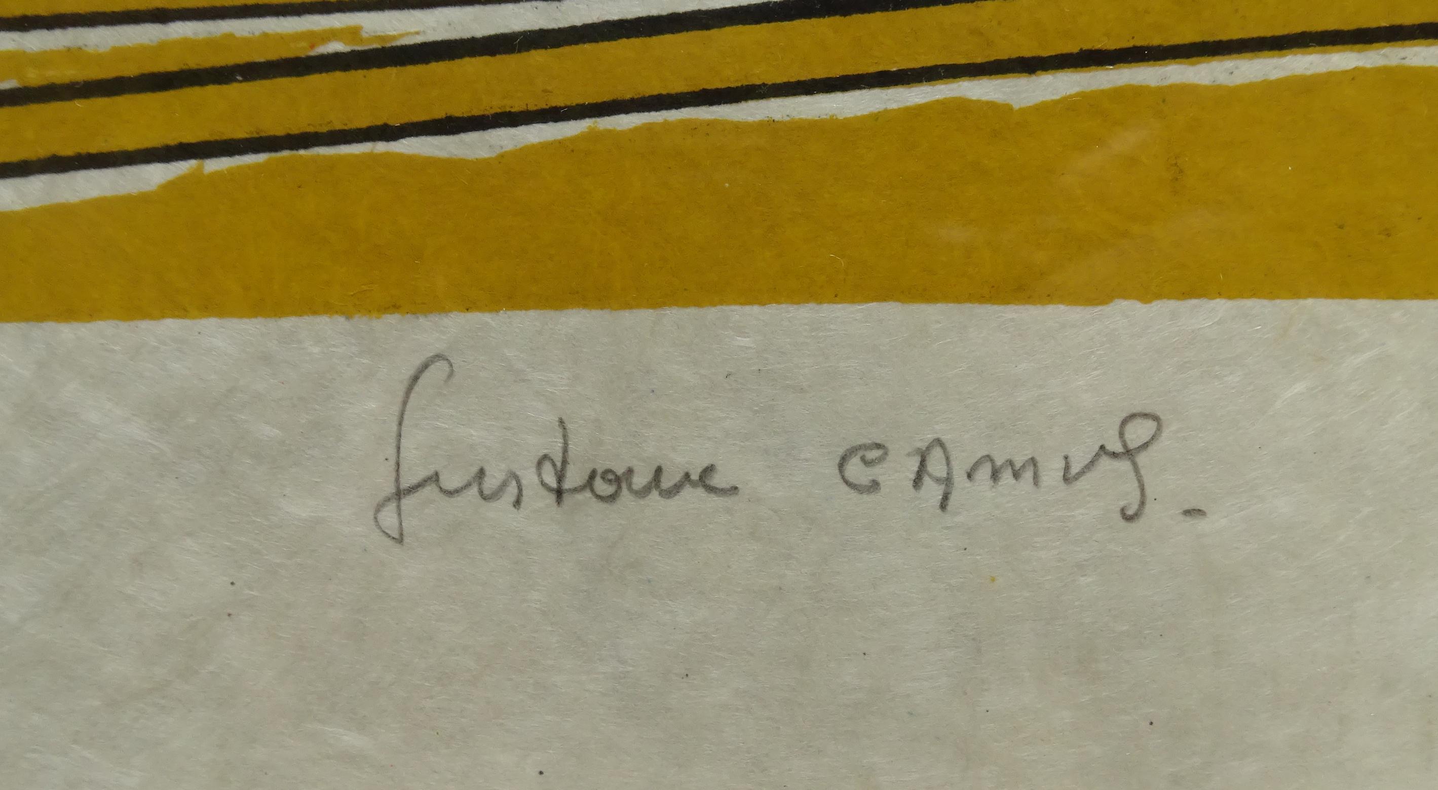 Estampe: Lithographie couleur/papier japon (pt taches qui ne touchent pas la gravure) -Sans titre- N°3/25 signé *CAMUS G.* (Gustave) (1914, 1984) 40x60cm cadre s-v