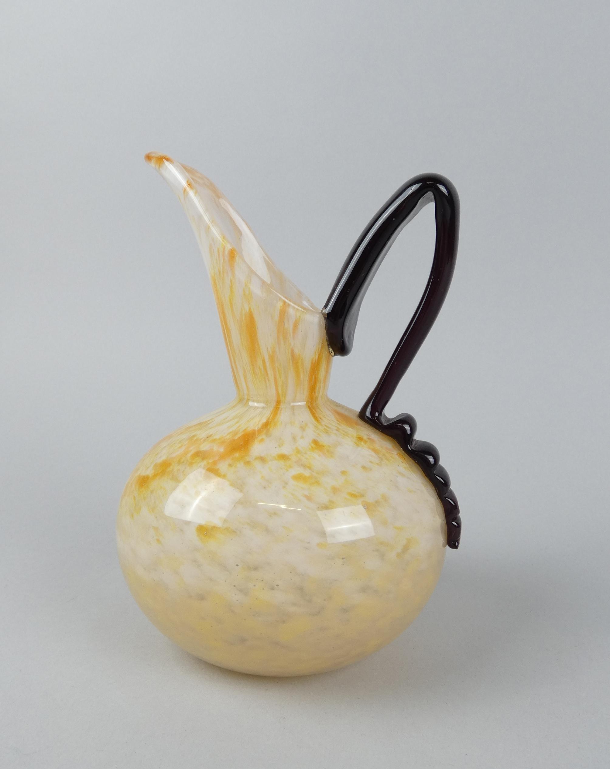 Verrerie: Pichet à anse en verre signé *SCHNEIDER C.* (Charles) (1881, 1953) H: 16cm