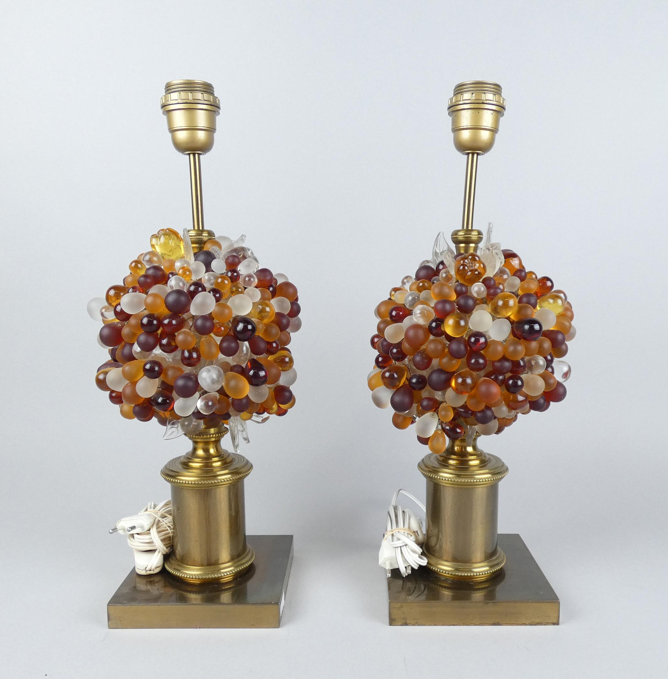 Luminaire : Paire de lampes - grappes de raisin - en verre piètement en laiton sans abat - jour