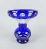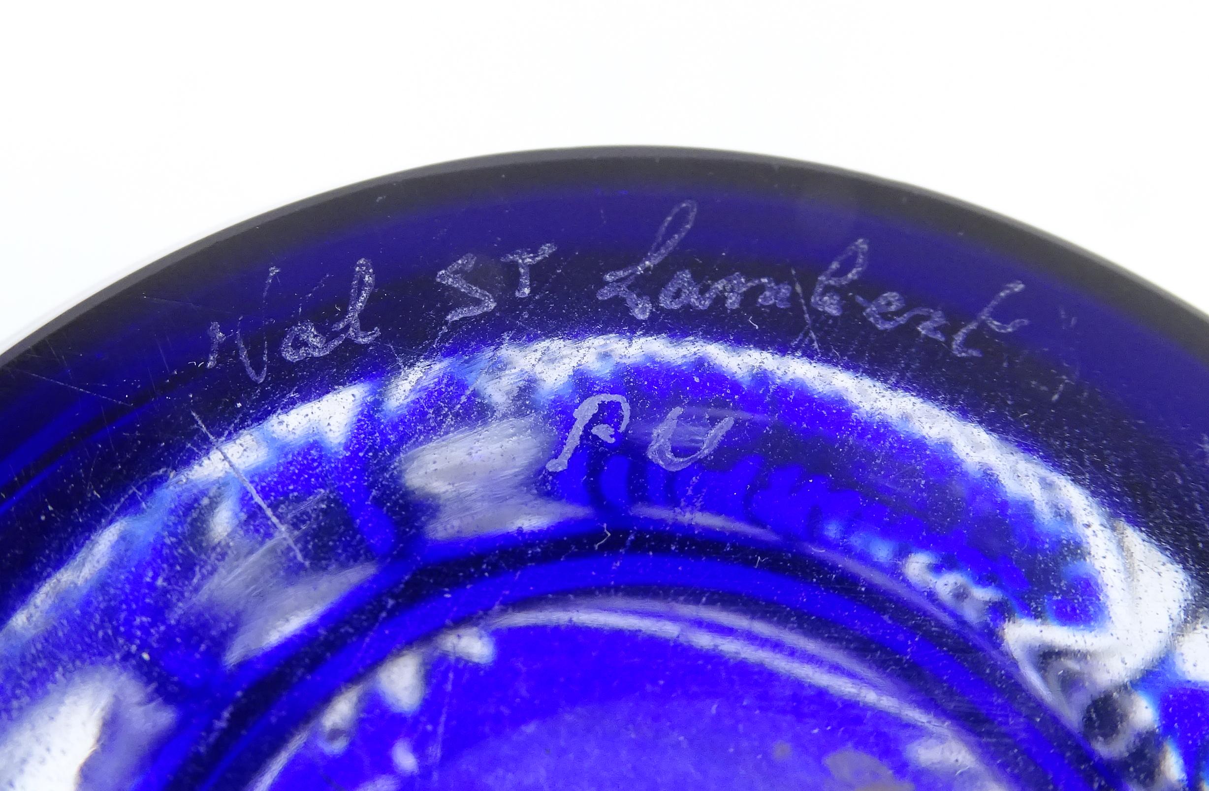 Verrerie : Vase en cristal taillé signé Val Saint Lambert monogrammé PU (pièce unique) bleu et incolore