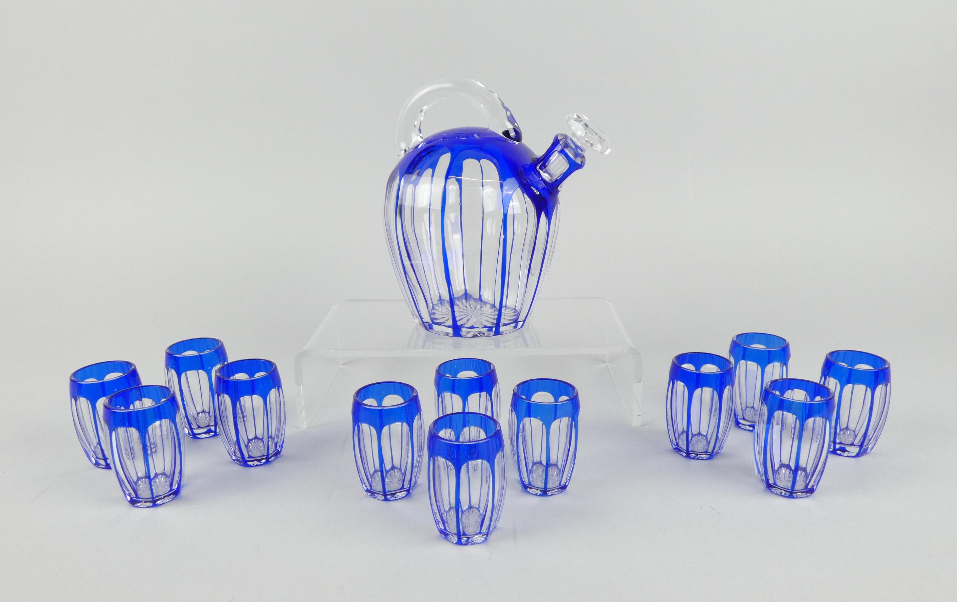 Verrerie: Service à liqueur (13pcs) en cristal attribué à Saint Louis: carafe et 12 verres (1egr)