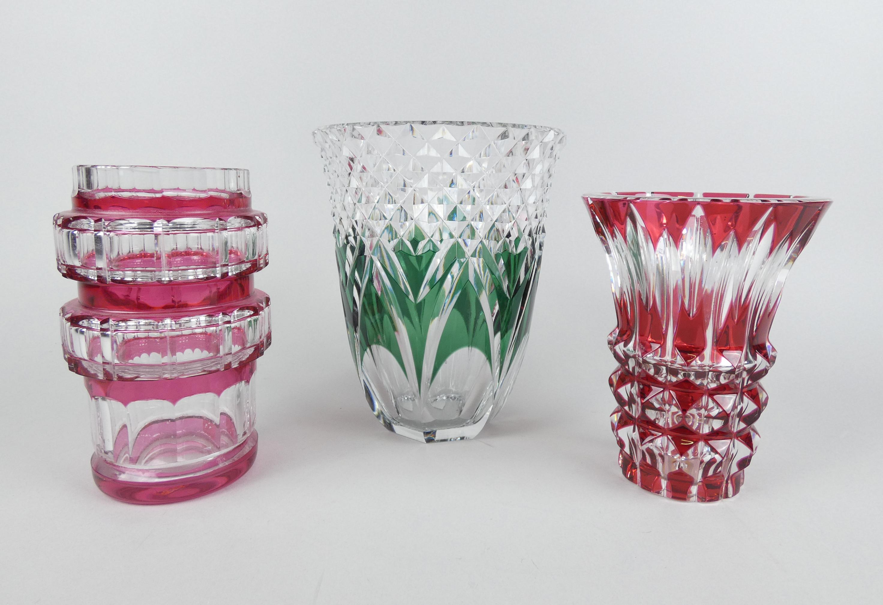 Verrerie: Vase en cristal taillé Val saint Lambert (égrenures) (3) H: 16,5 / 18 / 20,5cm
