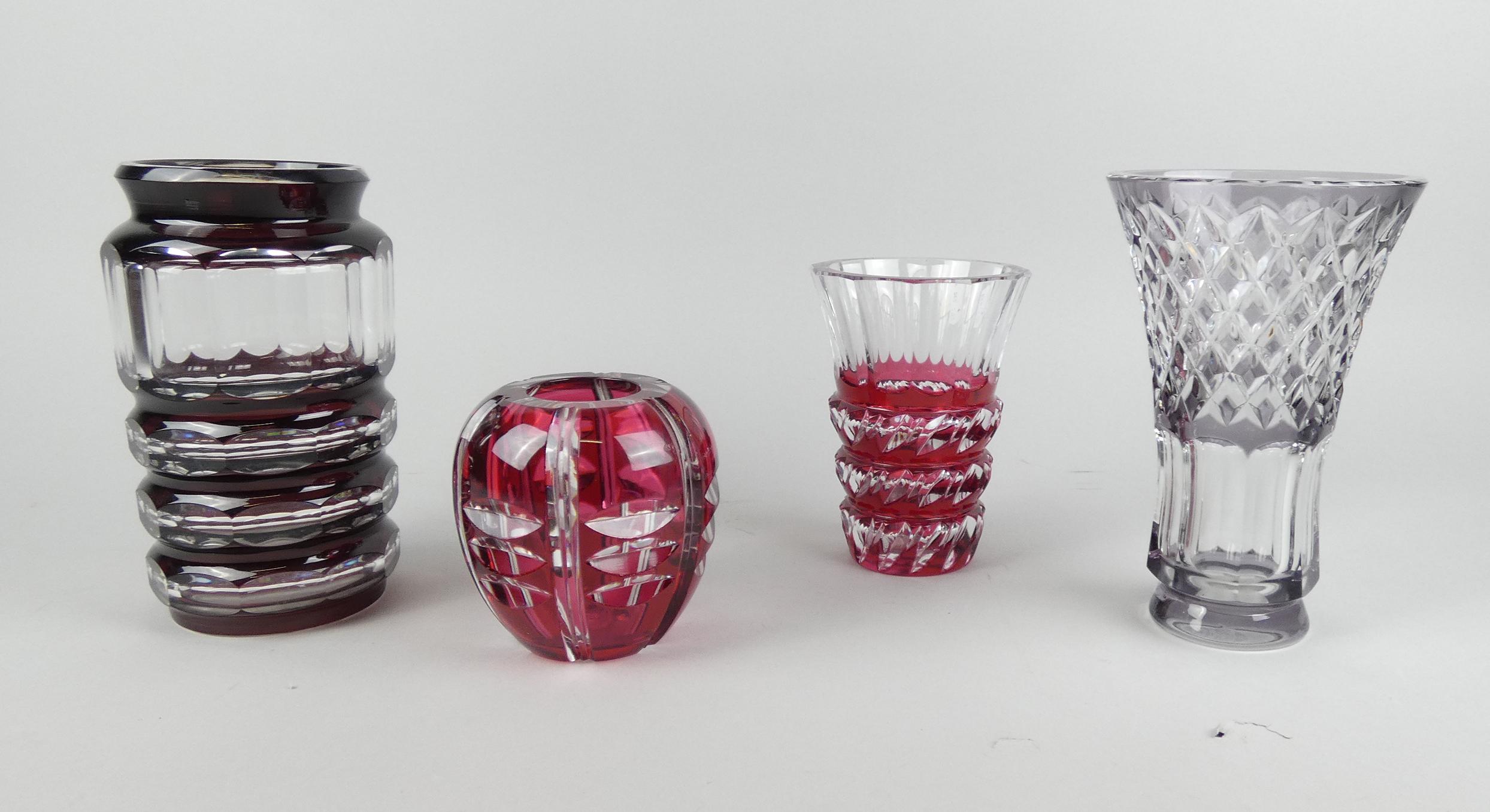 Verrerie: Vase en cristal taillé Val saint Lambert (4) dont 1 signé N°227/500 H: 11 / 15 / 20 / 20cm