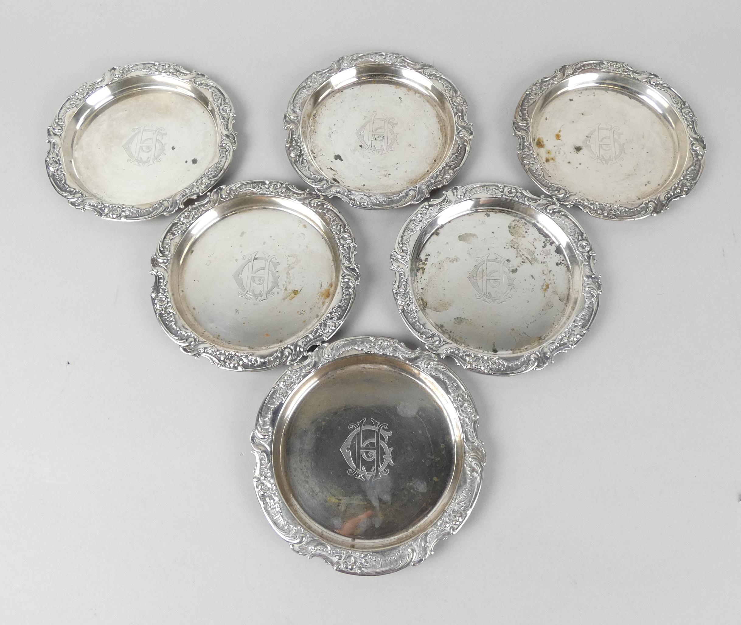 Argenterie: Coupelles anciennes en argent 800 (6pcs) insculpées couronne et lune Allemand P671g
