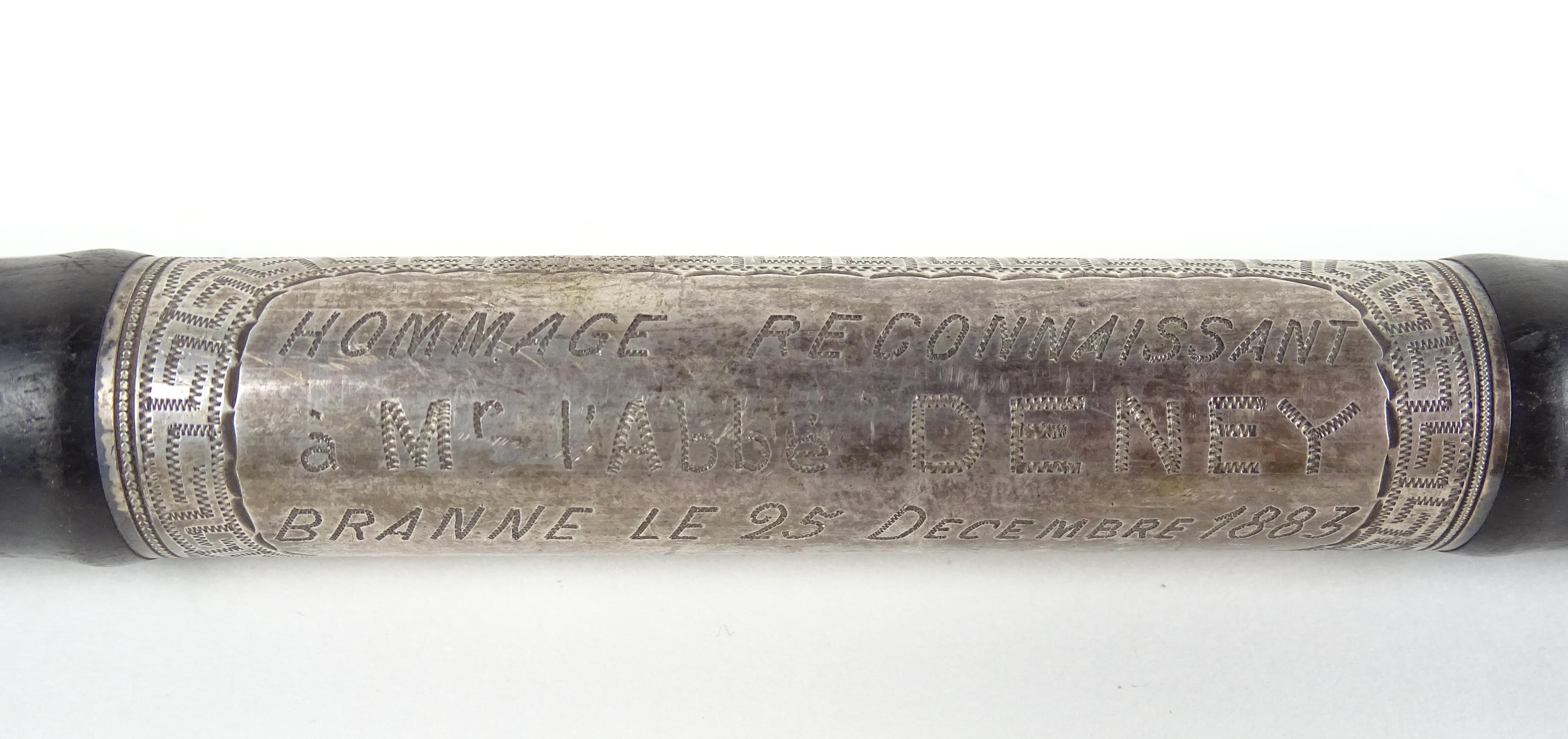 Objets : Baguette de chef d'orchestre en bois et argent avec inscription gravée - Hommage reconnaissant à Mr l'Abbé DENEY 1883 -