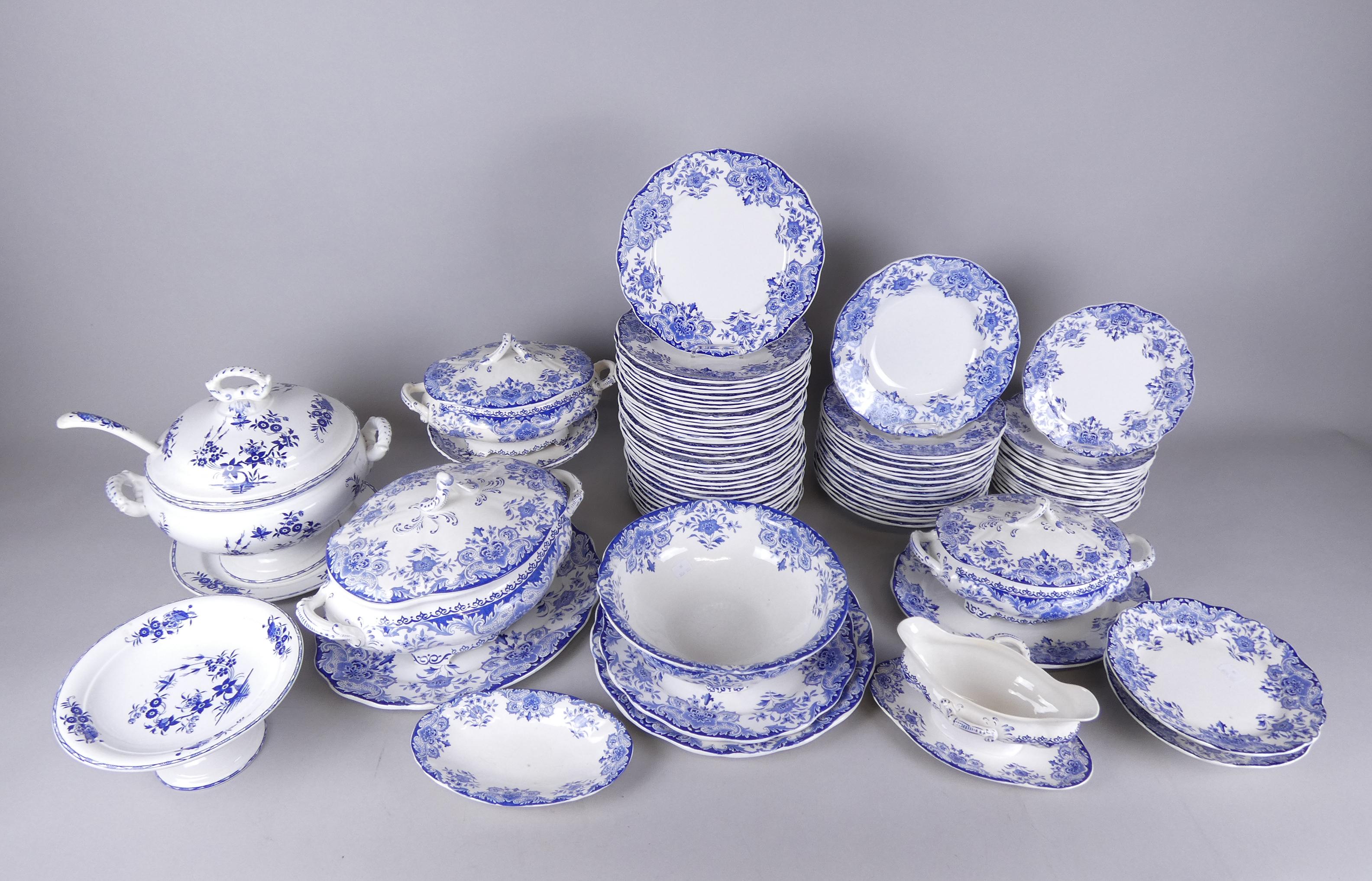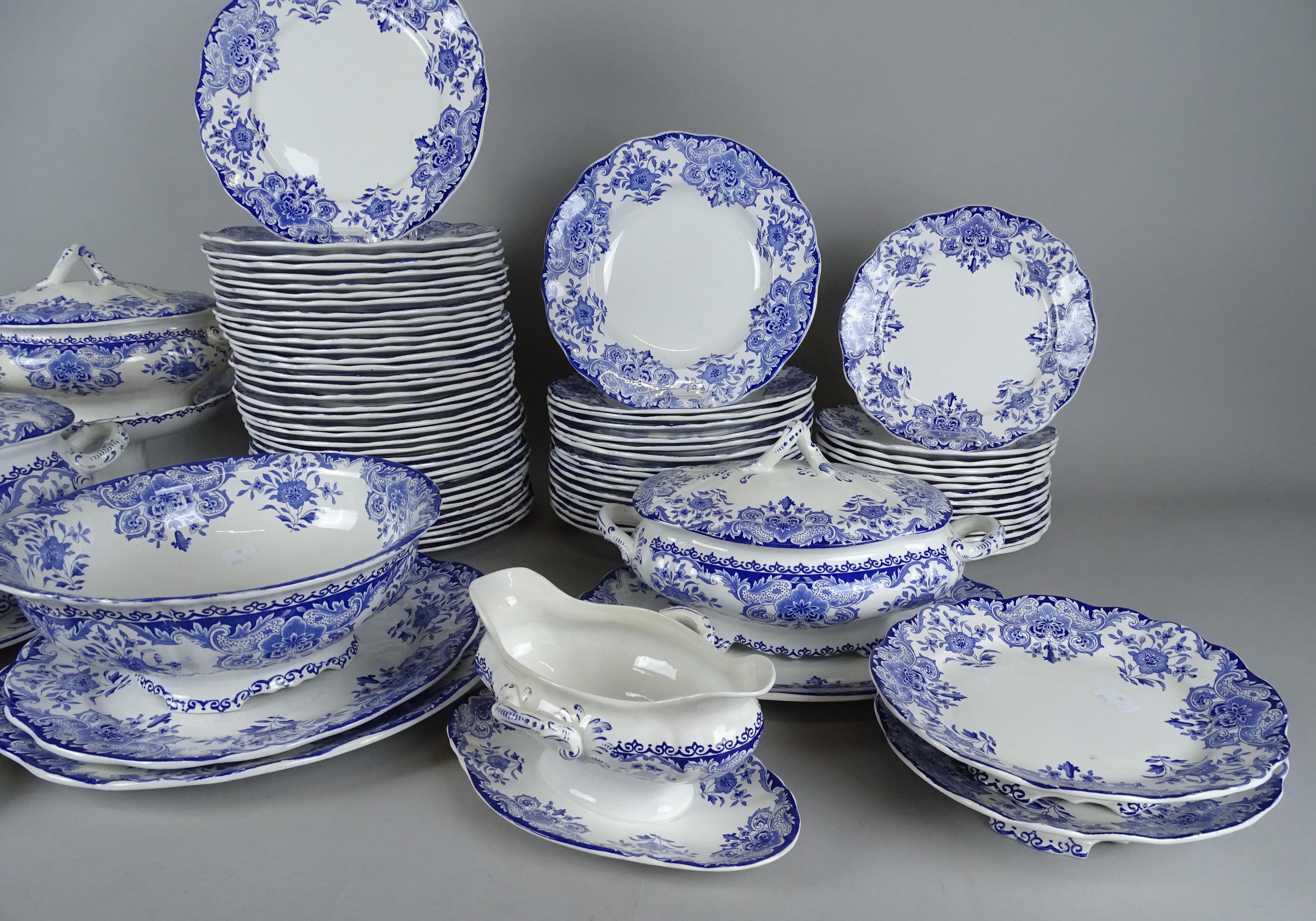 Céramique: Service à diner Boch modèle DORDRECHT (+/-80pcs): soupière, légumiers (1chv), 38 ass pl, 17 cr, saladier, 3 plats sur pied.. + 1 soup a/louche et plat GdBouquet