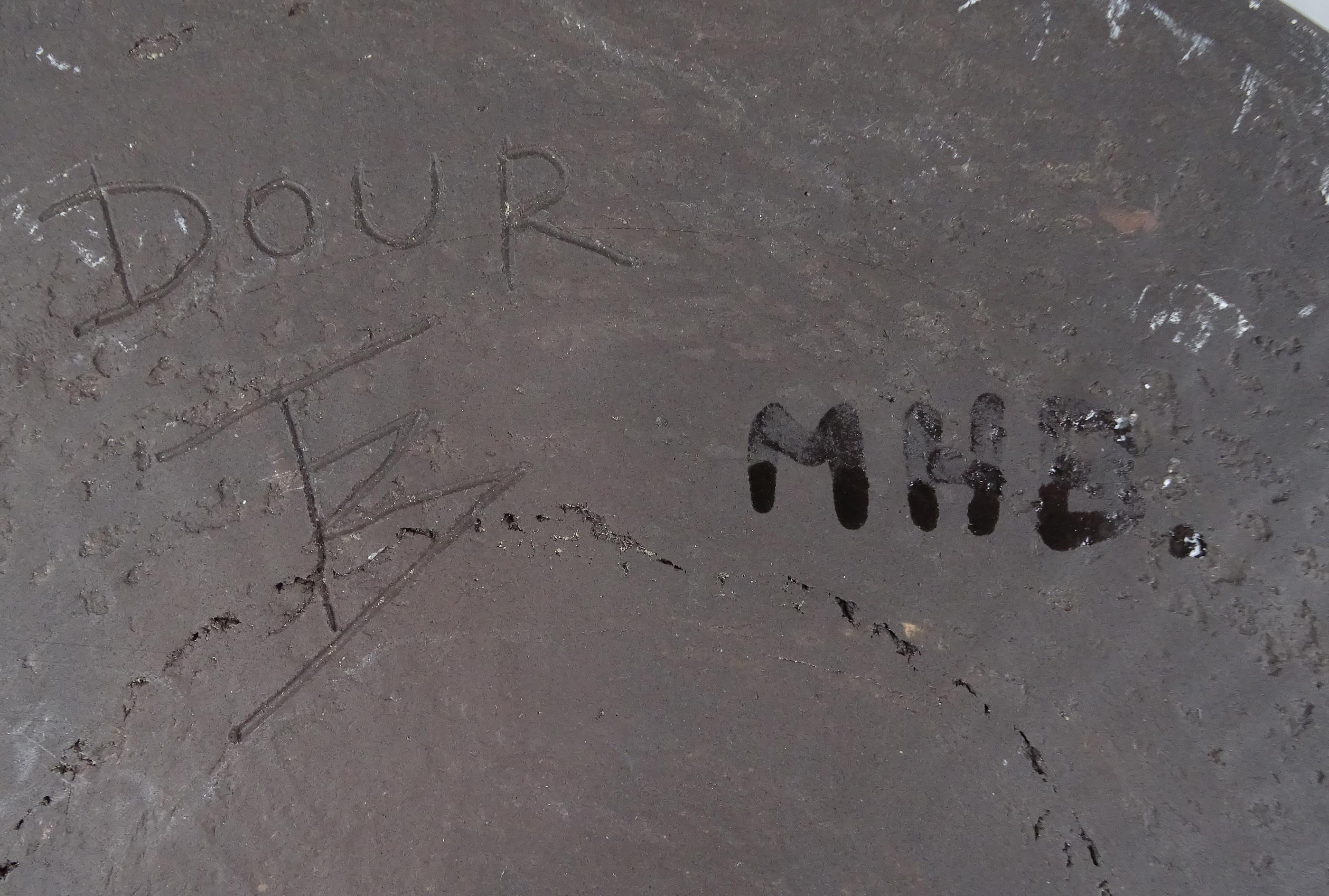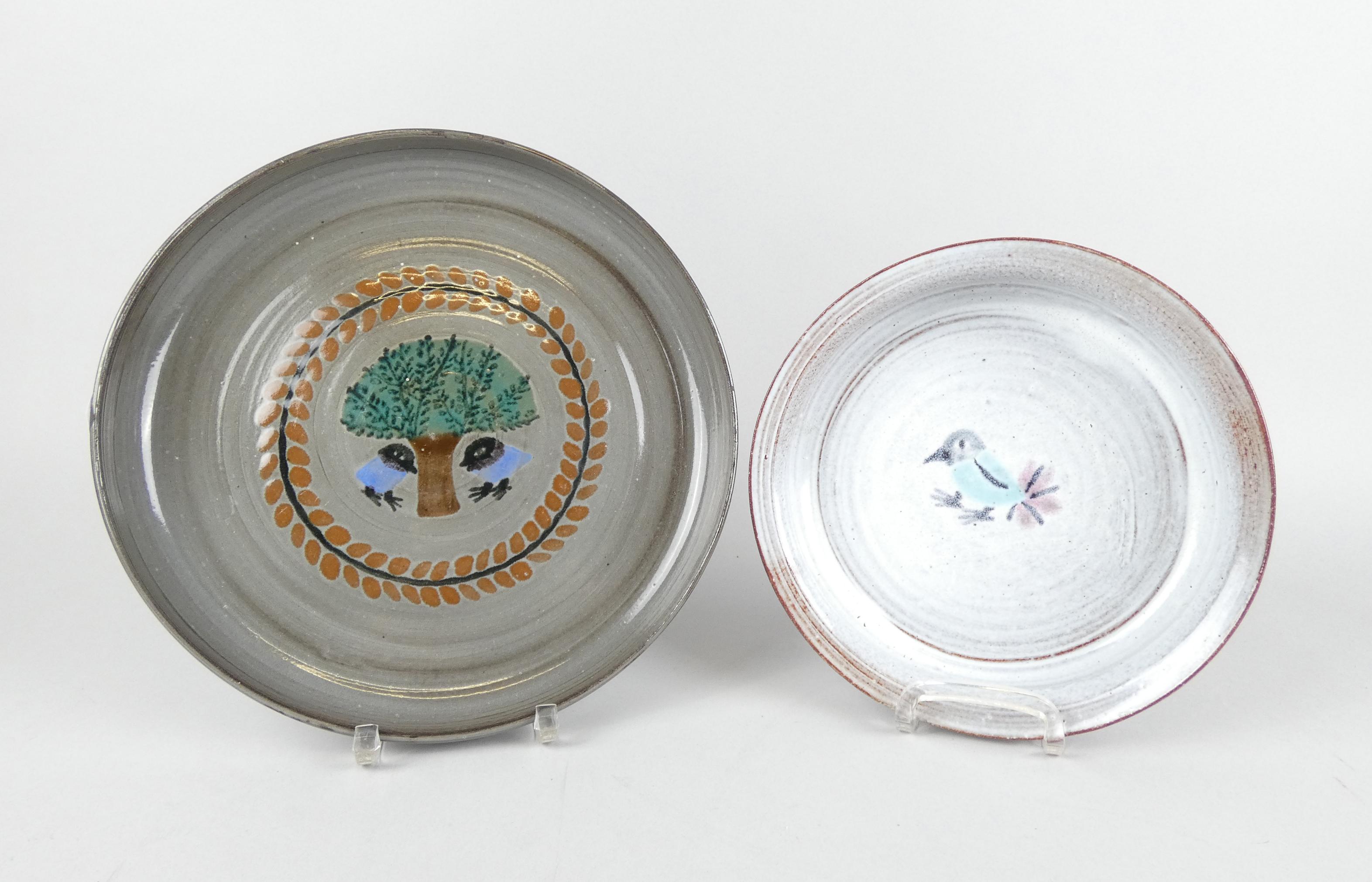 Céramique: de DOUR 2 assiettes: 1signé au revers *BATAILLE M-H.* (Marie-Henriette) (1931, ? ) & *BATAILLE T.* (Thérèse) (1933, 20021) + 1signé MHB BATAILLE M-H.