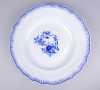 Céramique: Plat en porcelaine de Tournai (pt défaut cuisson) à bord chantourné milles côtes décor Ronda cachet épées croisées et croisettes D:40cm