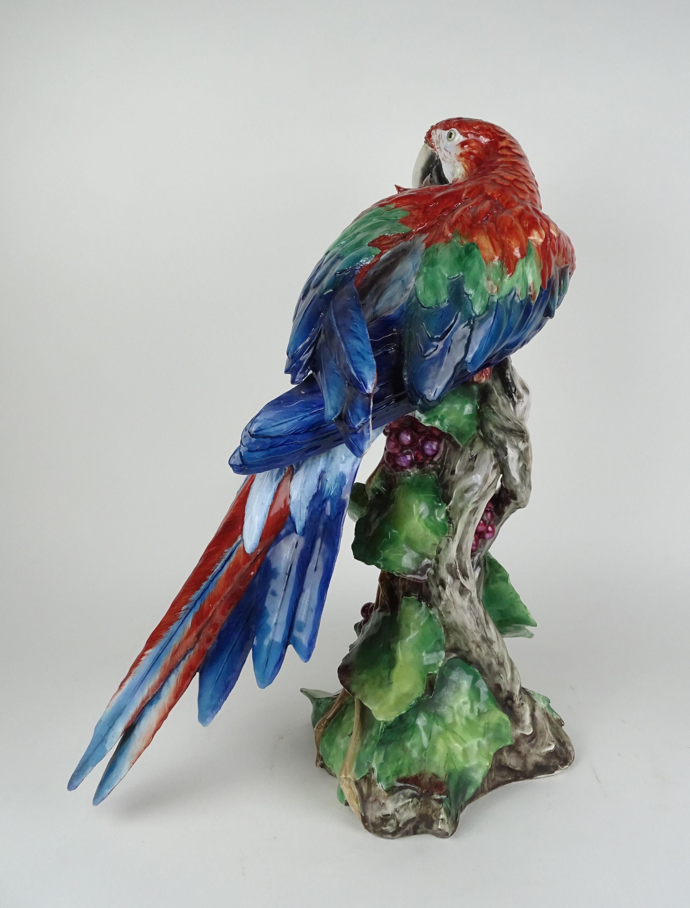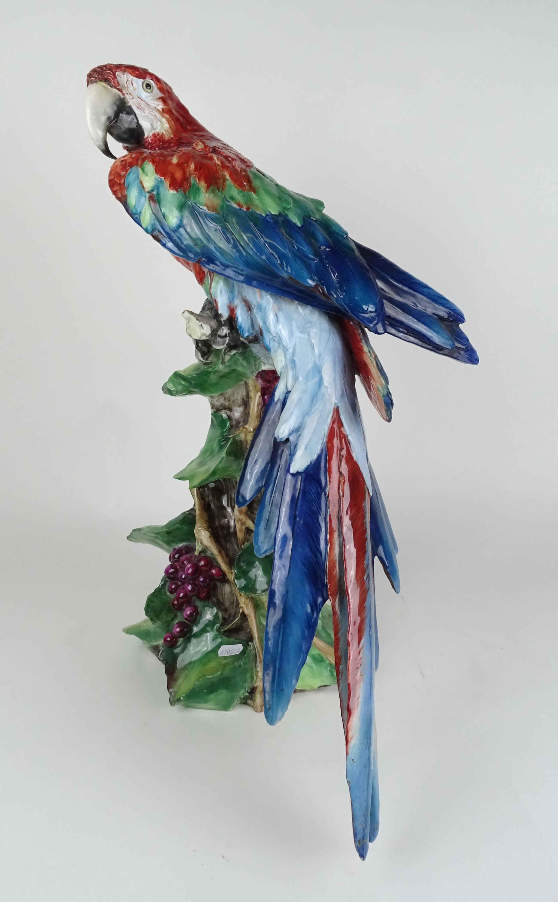 Céramique: Grand Ara sur branche de vigne attribué à *TAY* () (Italie 1915, 1991) (rest) H:59cm