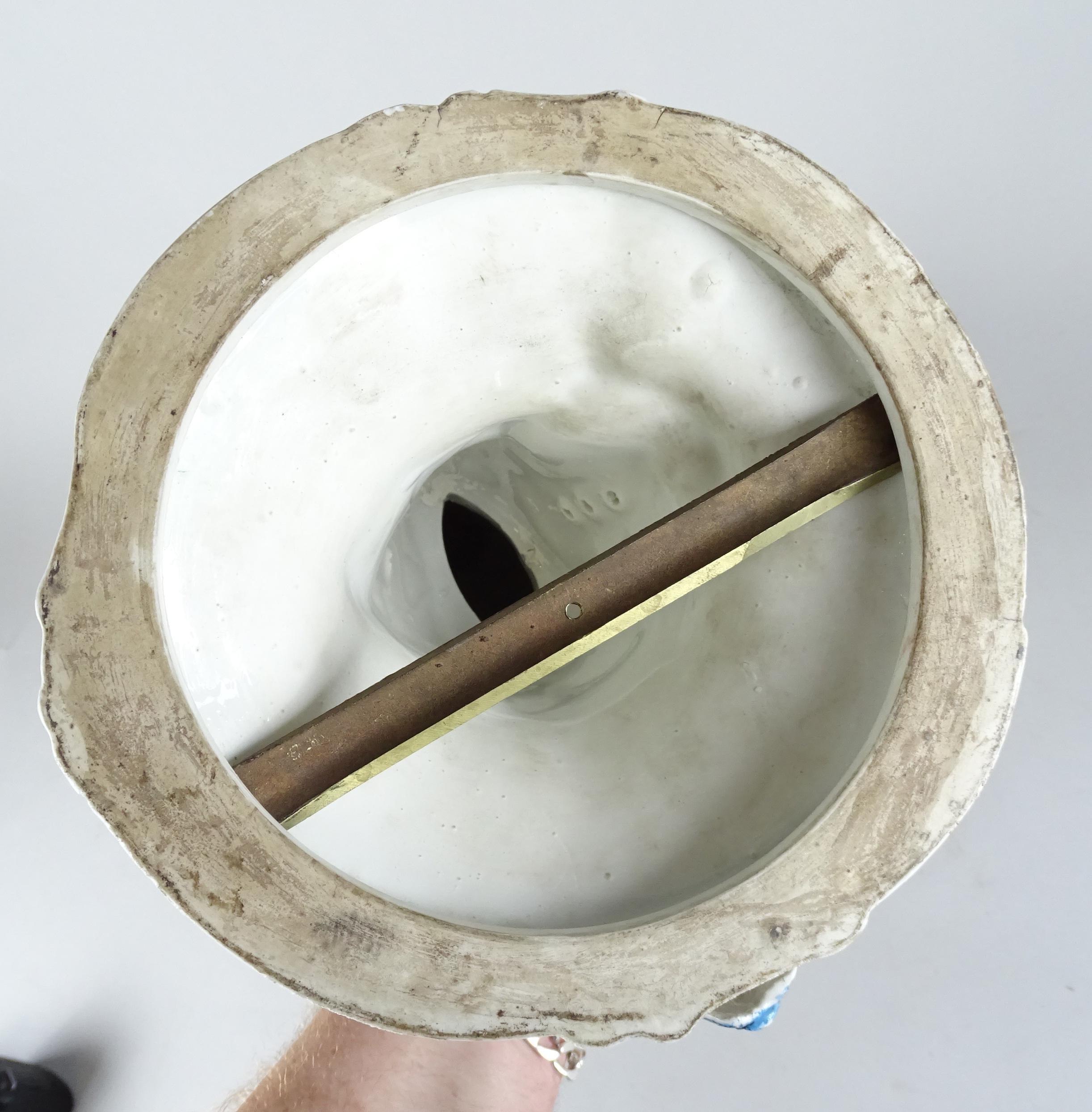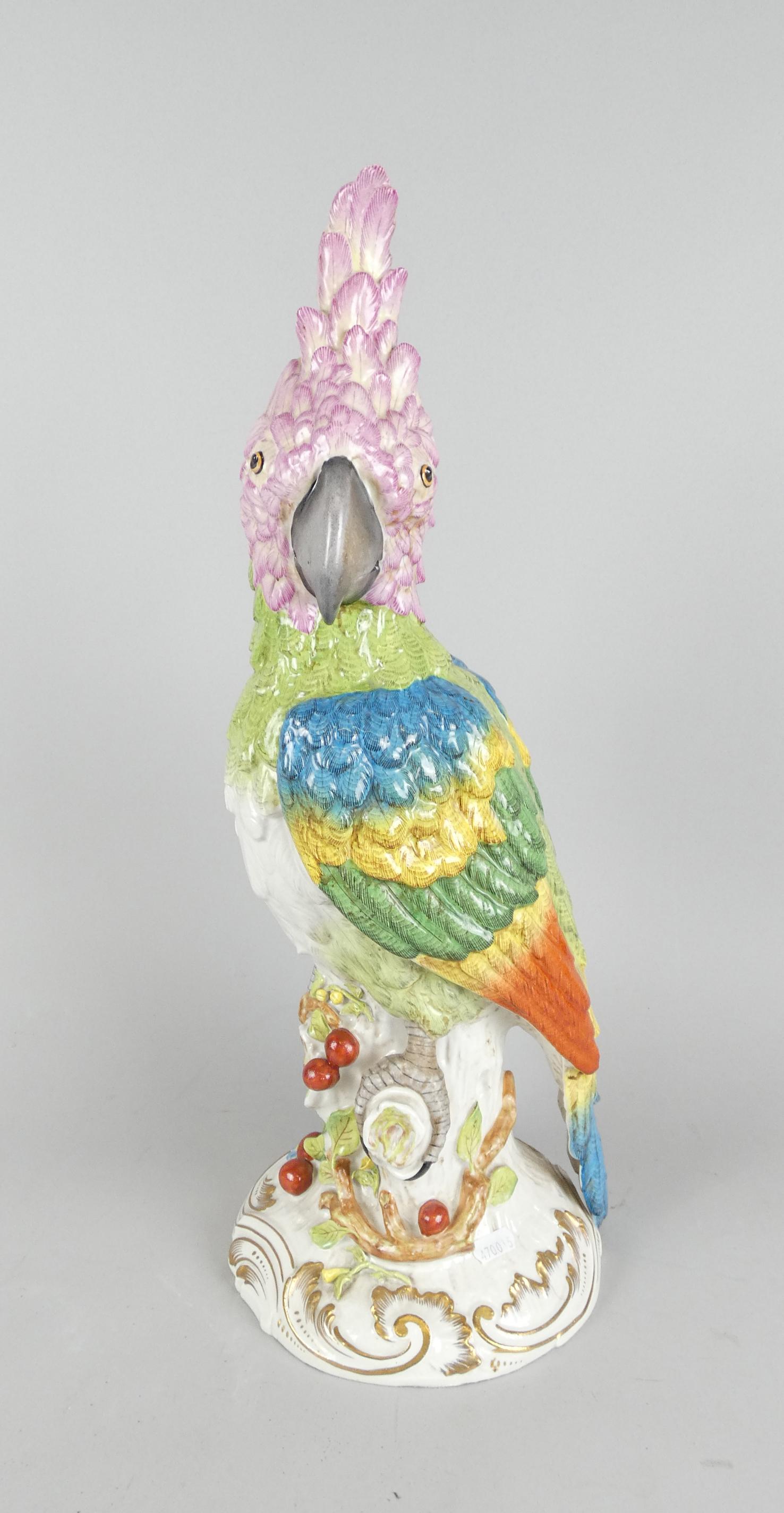 Céramique: Perroquet en porcelaine émaillée polychrome, marque aux doubles flèches EISENBERG en bleu H:54,5cm