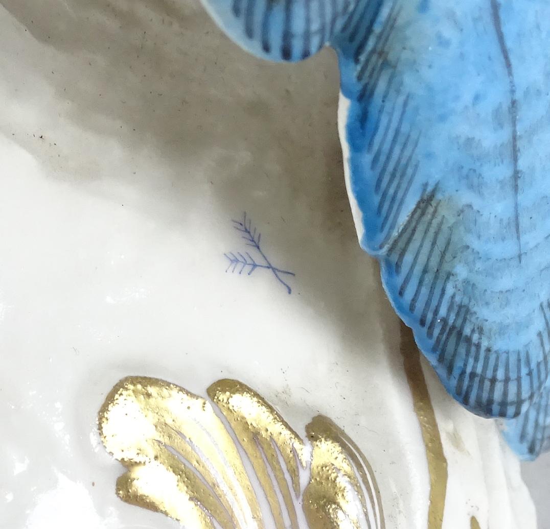 Céramique : Perroquet en porcelaine émaillée polychrome , marque aux doubles flèches EISENBERG en bleu