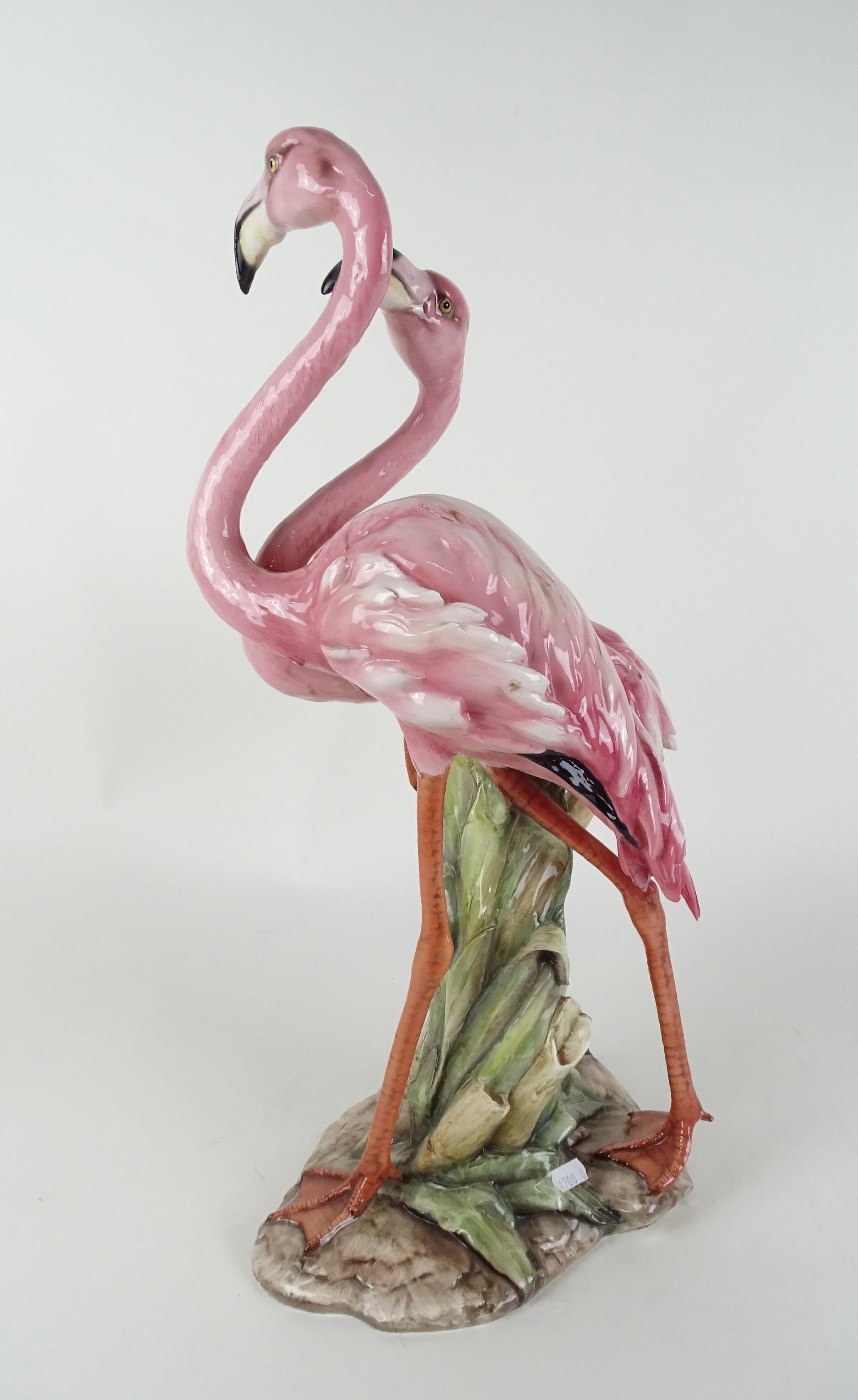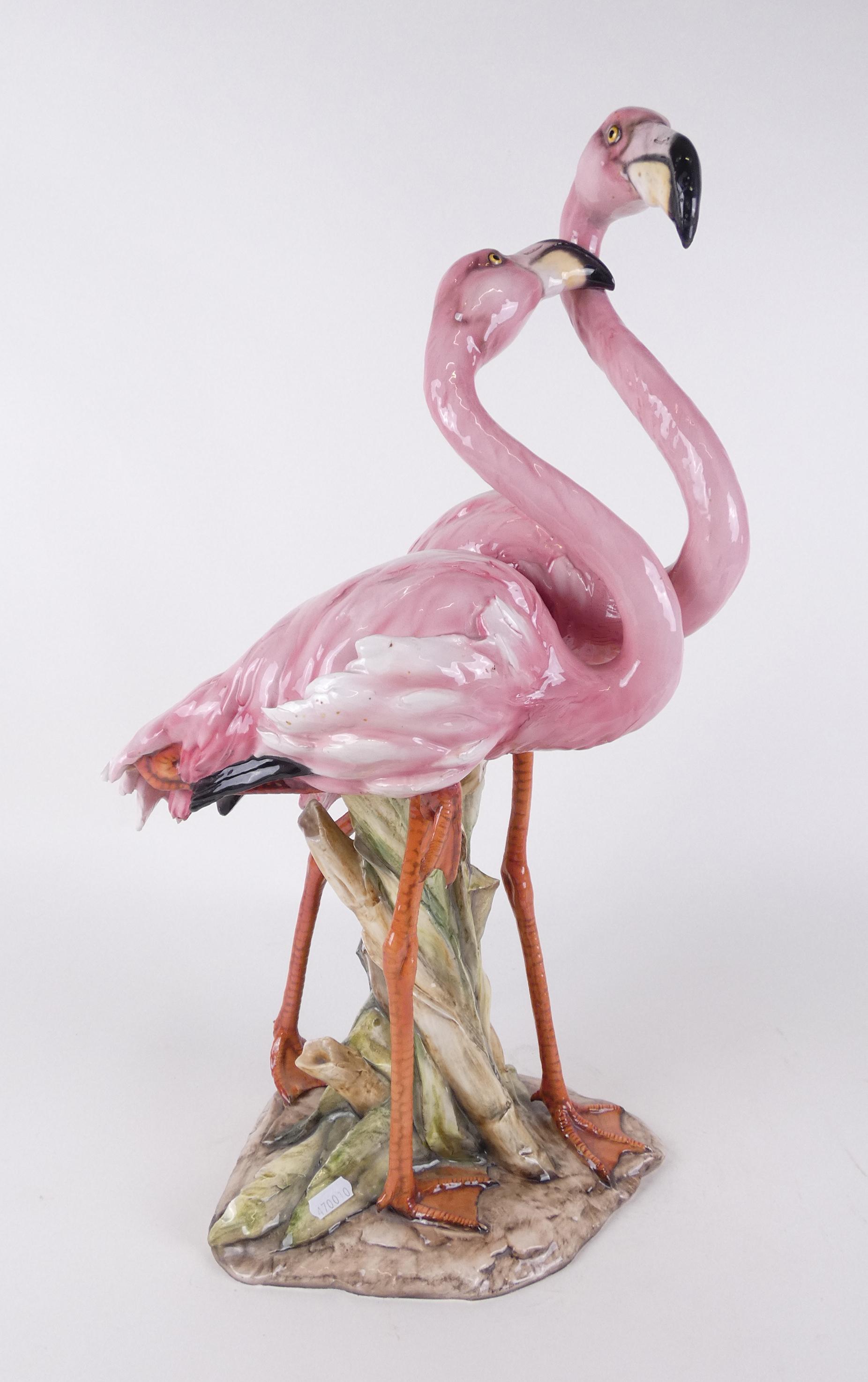 Céramique: Couple de flamants roses en faïence signé *TAY* () (Italie 1915, 1991) H:58cm