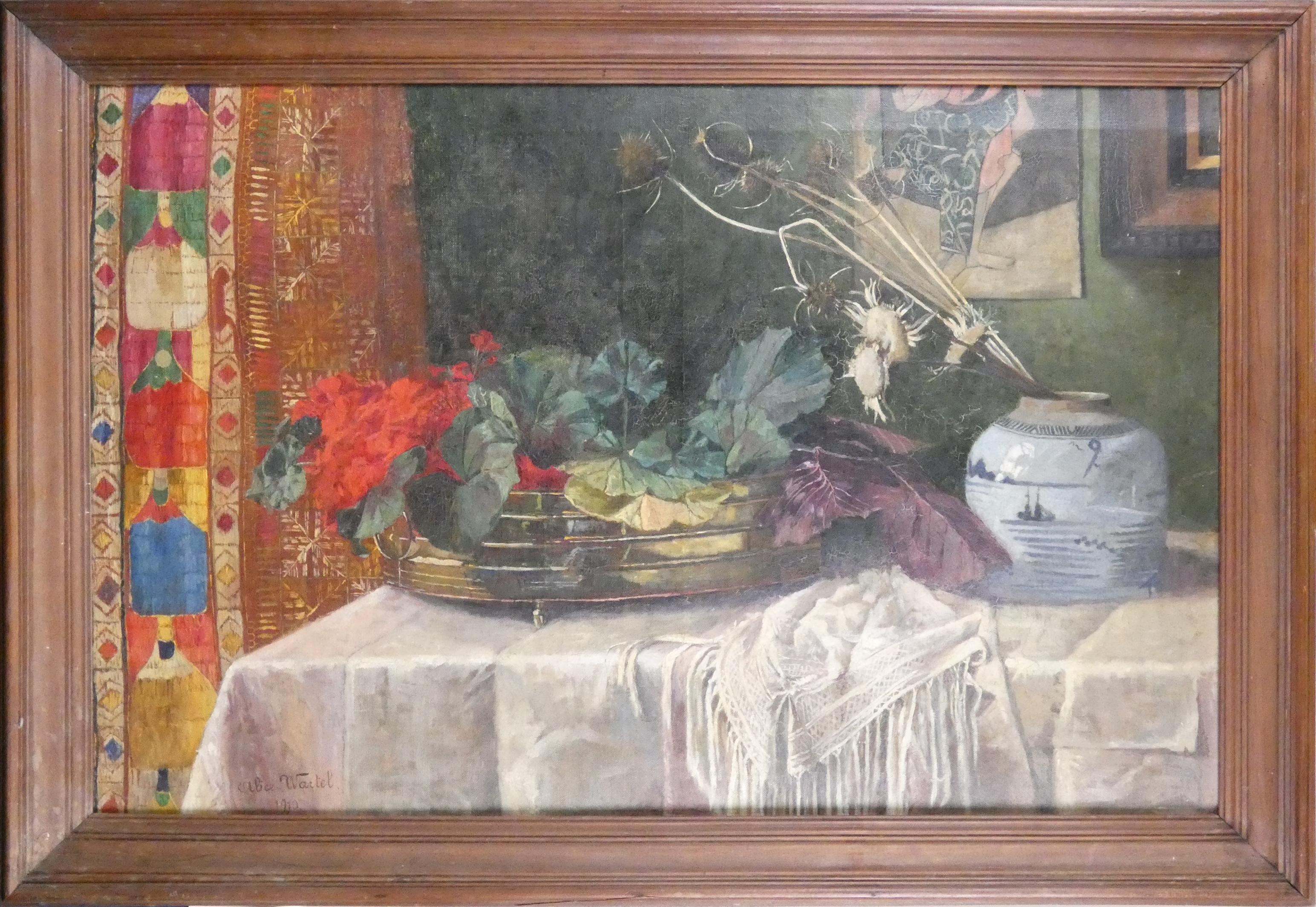 Tableaux HST -Nature morte- daté 1910 signé Alice WARTEL (19e, 20eS) 63x95cm cadre bois
