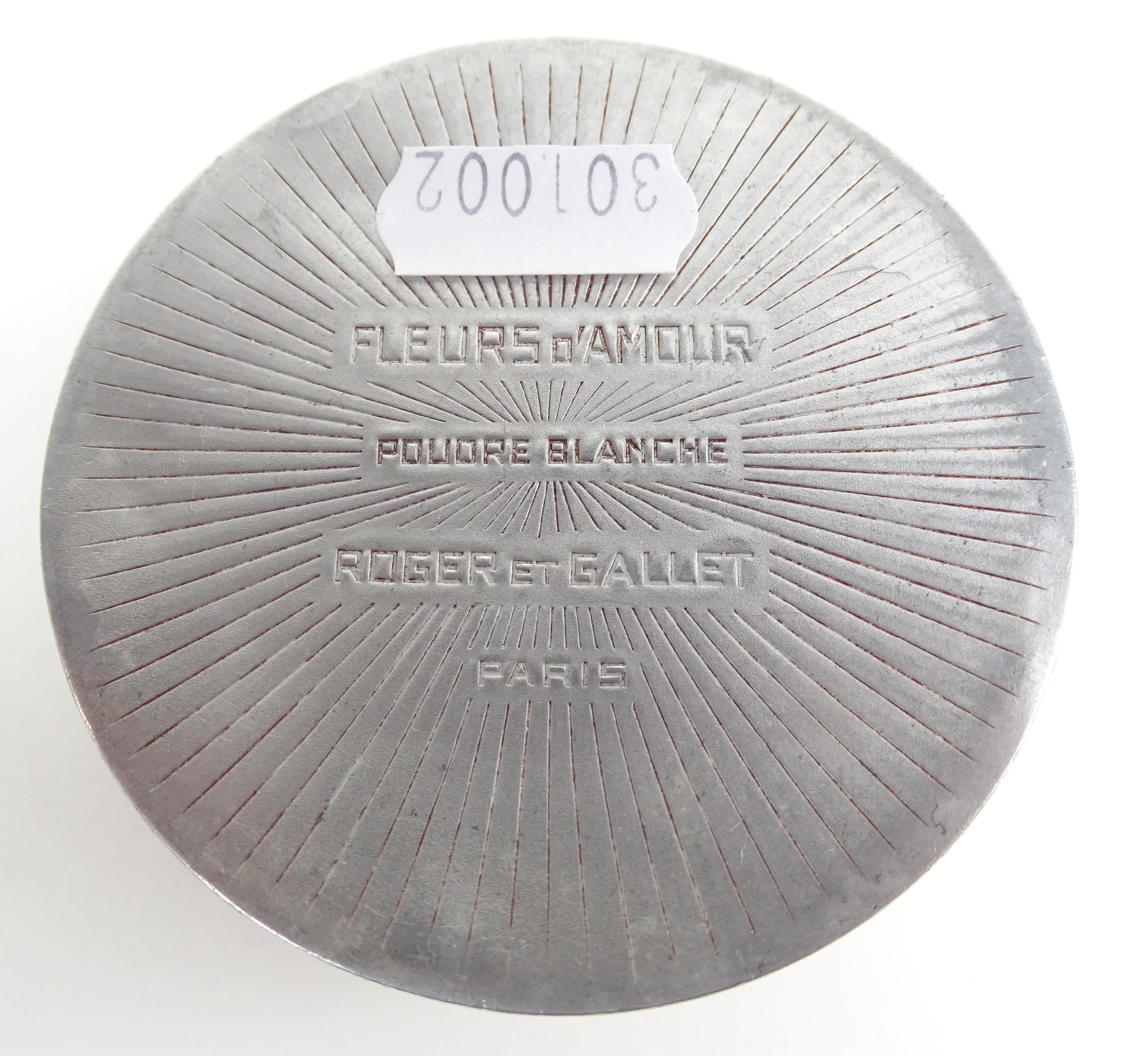 Objet: Boite à poudre -fleur d'amours- signé Lalique Poudre Rachel Roger & Gallet Paris Diam:7,5cm