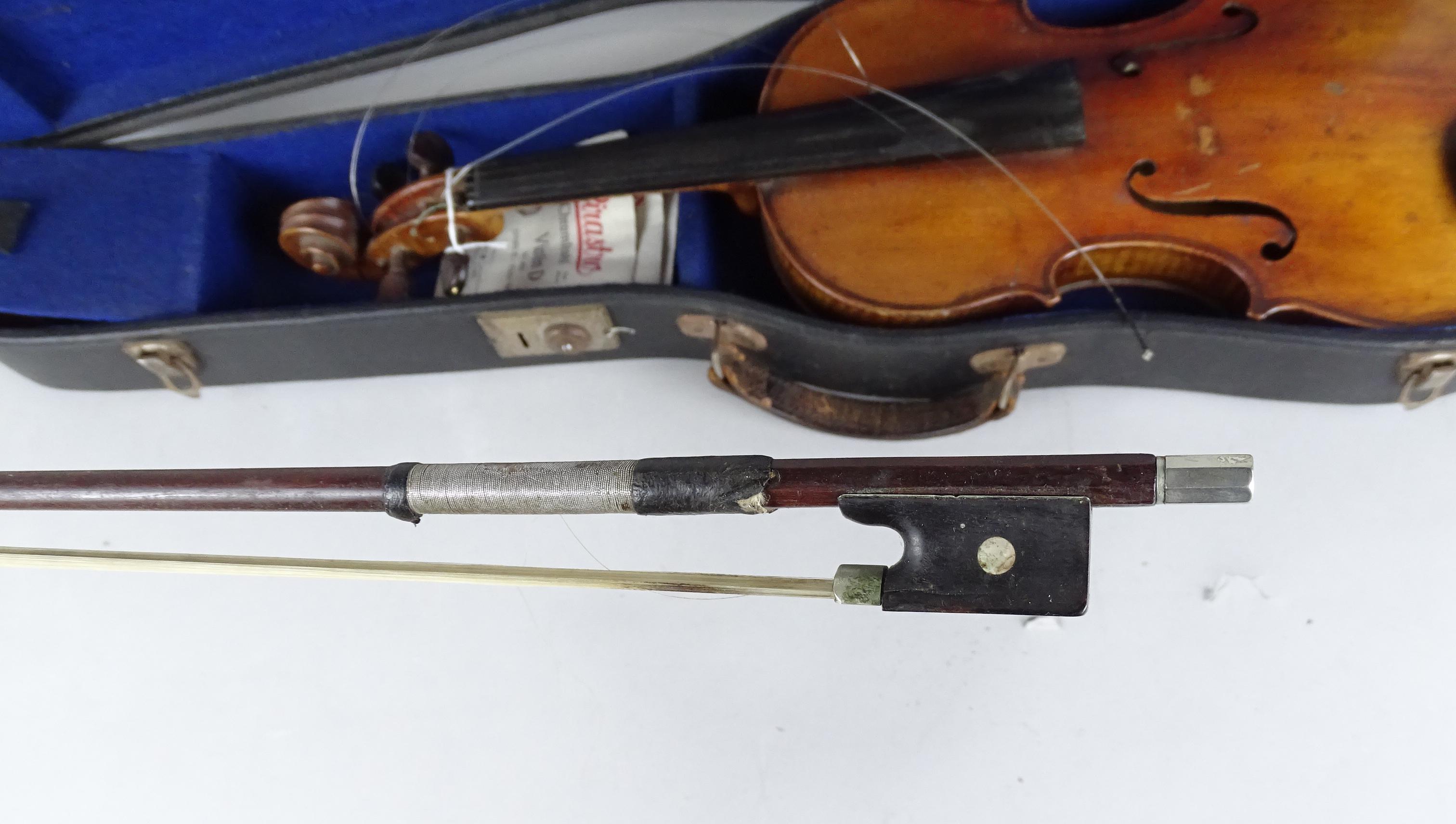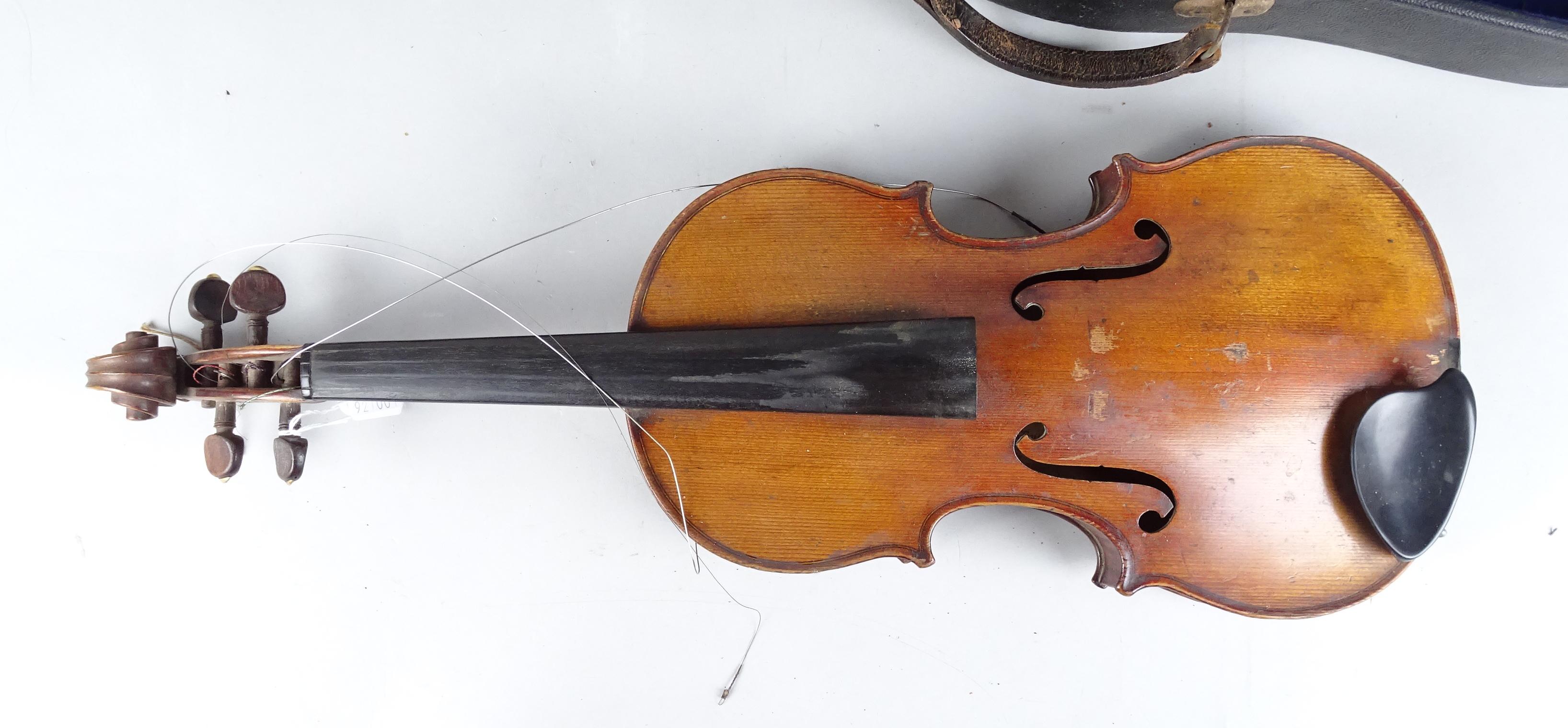 Musique: Violon ancien entier (usure, mq) dos en 1 partie étiquette apocryphe -PH. GUARNARIUS 1771- avec archet + étui