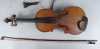 Musique : Violon ancien entier (usure , mq) dos en 2 parties étiquette apocryphe - Joseph GUARNARIUS - avec archet (acc) + étui