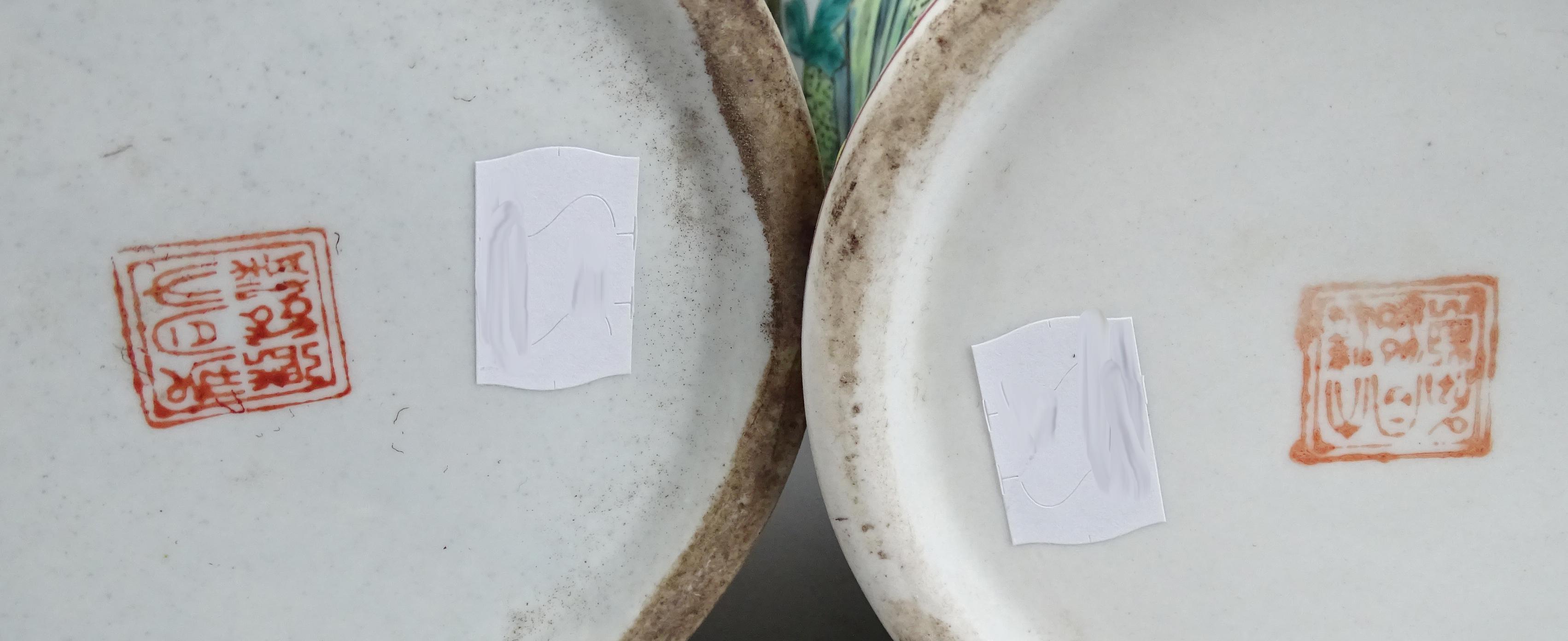 Asiatique : Paire de vases en porcelaine chinoise marque apocryphe Da Qing Tongzhi Nian Zhi 3e quart XXe Siècle