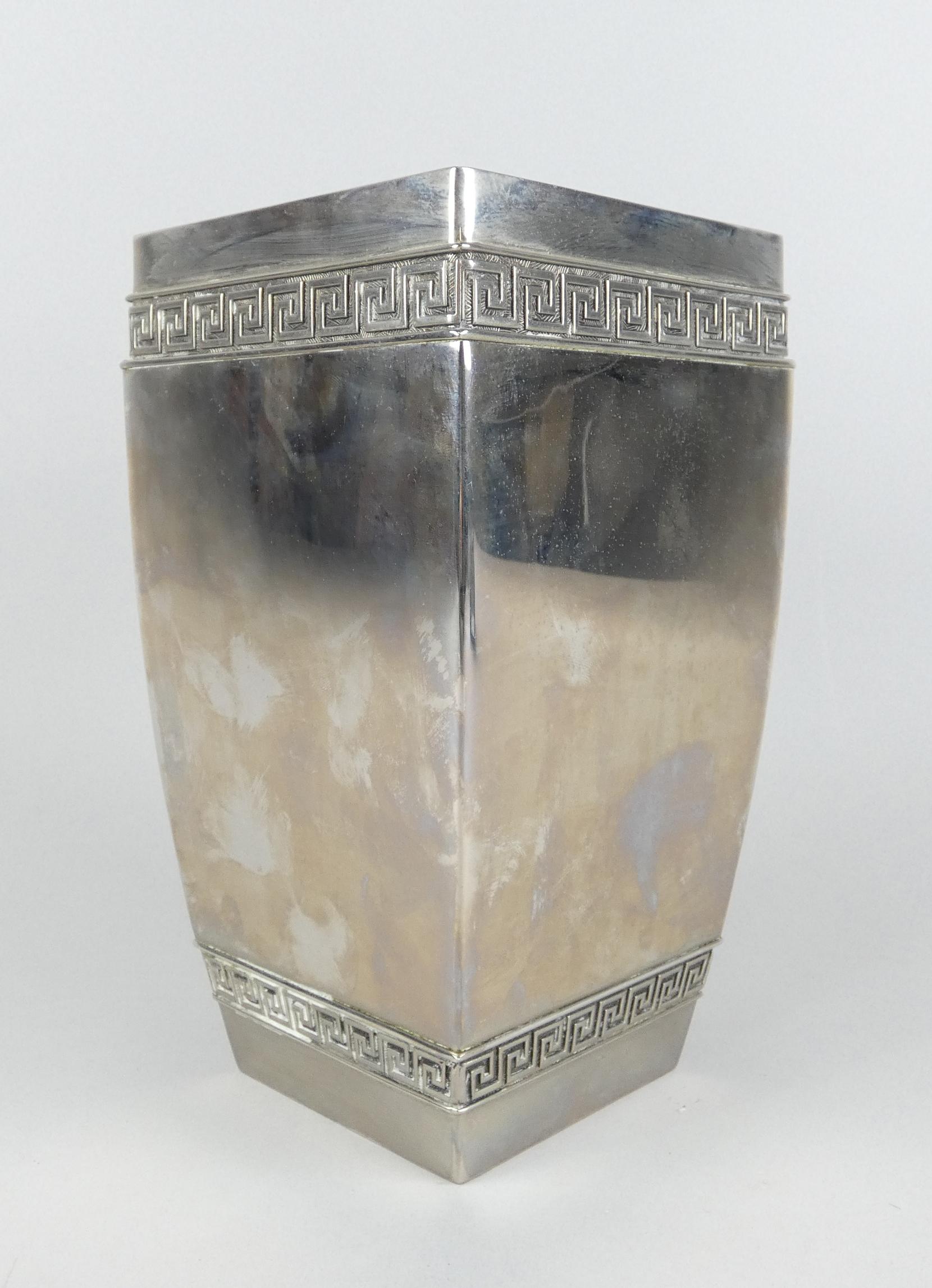 Argenterie: Vase en métal argenté frise à la Grecque H:24x13x13cm