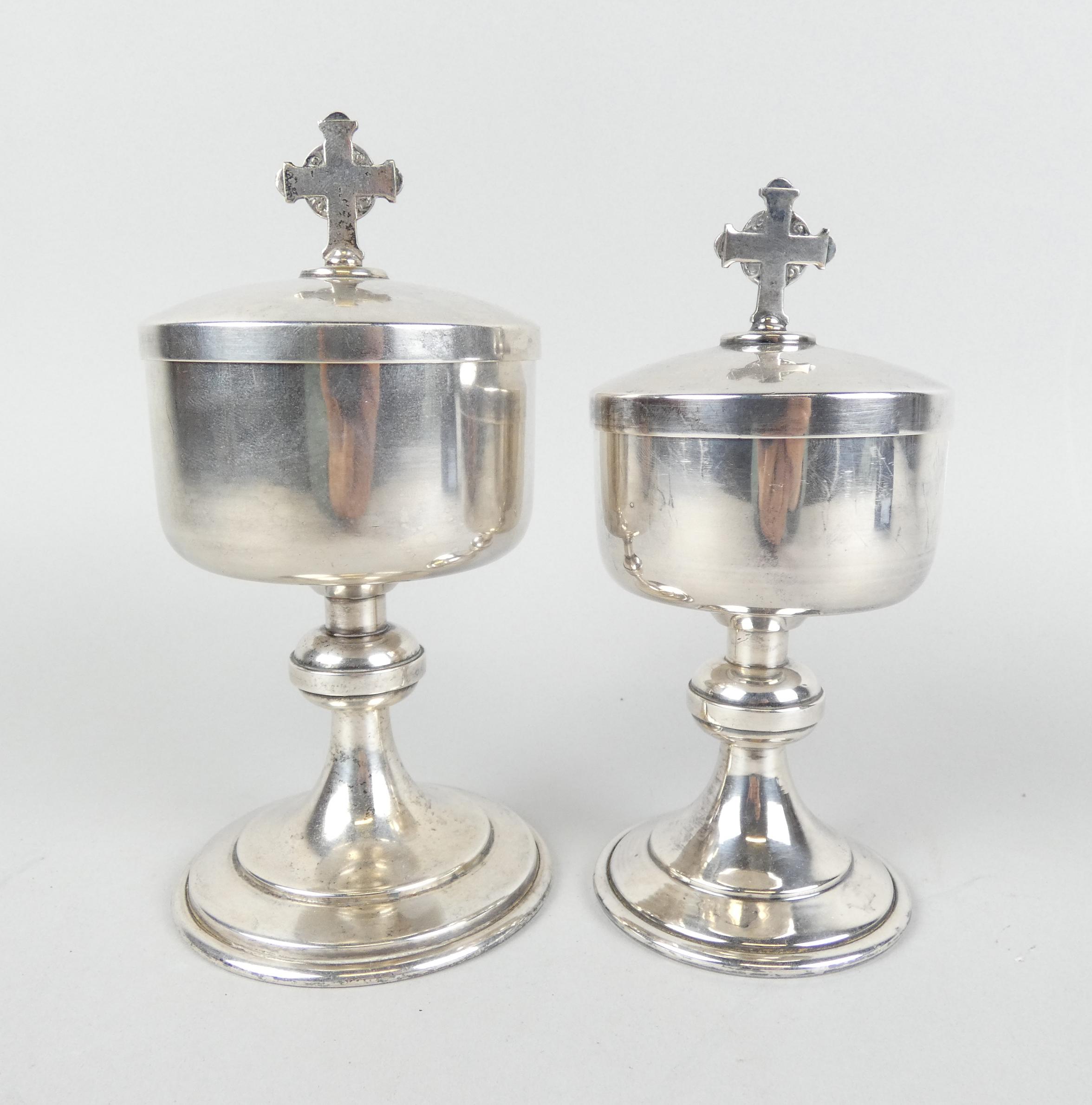 Objets: 2 ciboires en métal argenté intérieur doré H:16,5 et 18cm (2pcs)