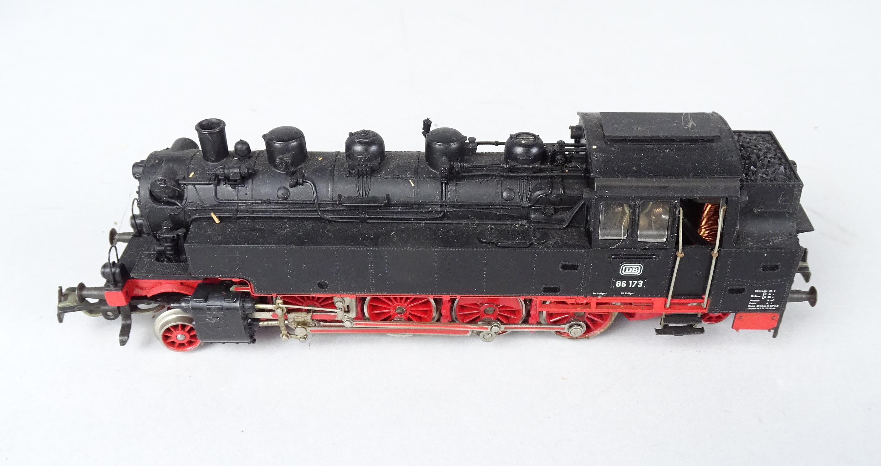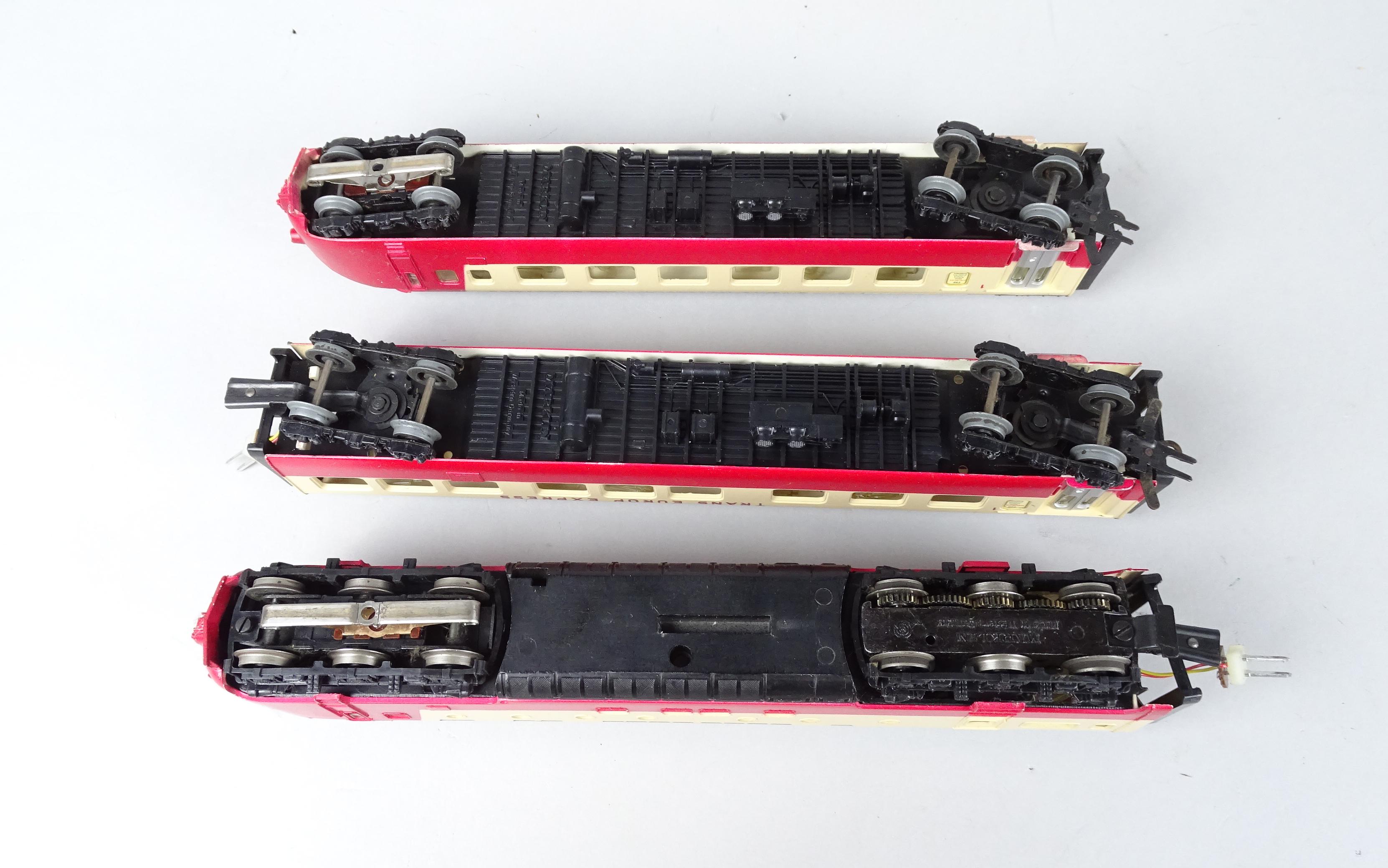 Jouet : Trains H0 MARKLIN (traces d'usages)) : locomotive diesel Trans Europ Express + 6 locomotives + 19 wagons + transfos + rails + aiguillages + divers
