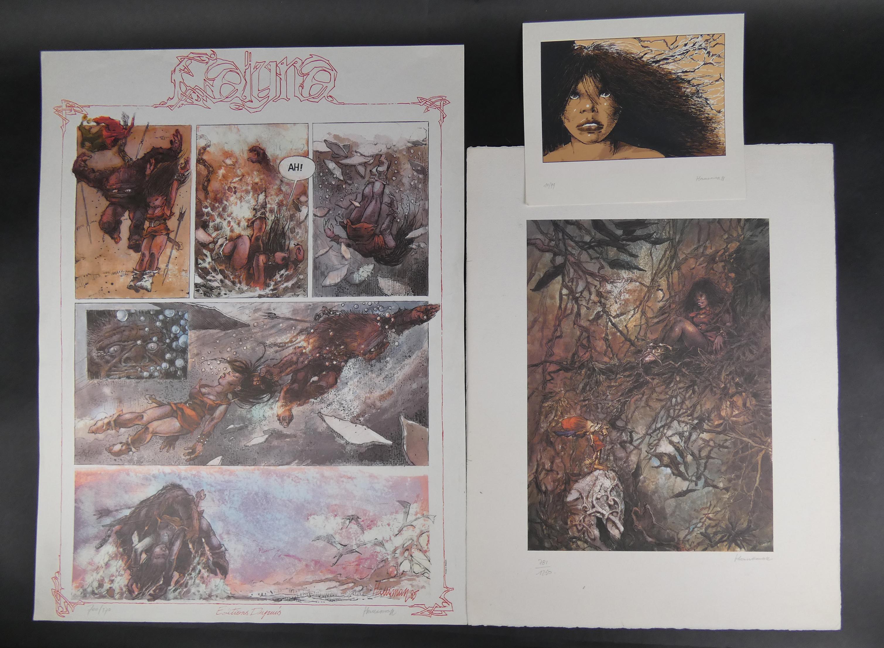 BD Estampe: signée *HAUSMAN R.* (René) (1936, 2016) (3pcs): sérigraphie 12/99 25x30cm + 2 Offset Laïyna Numérotés 65x50 et 80x60cm