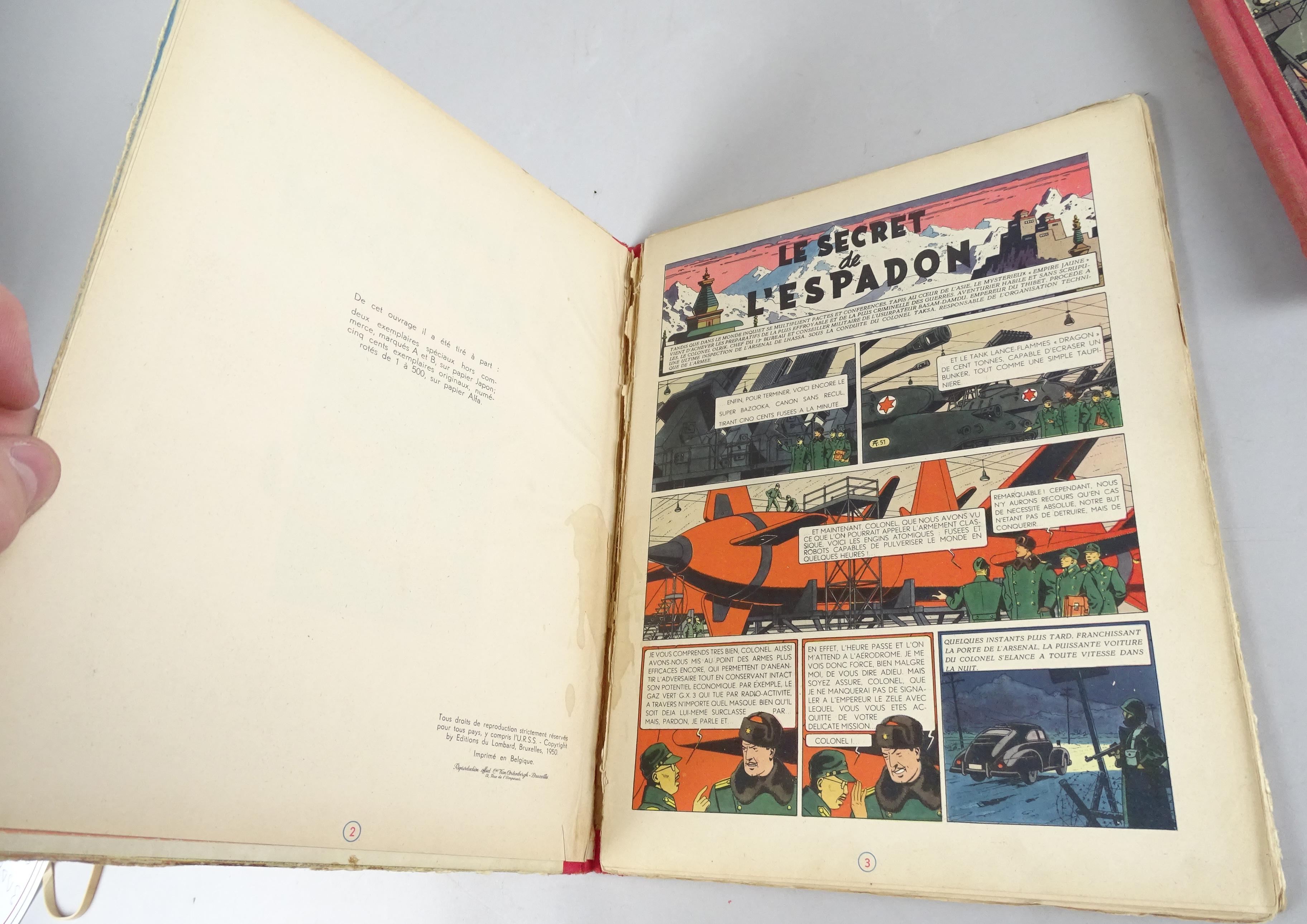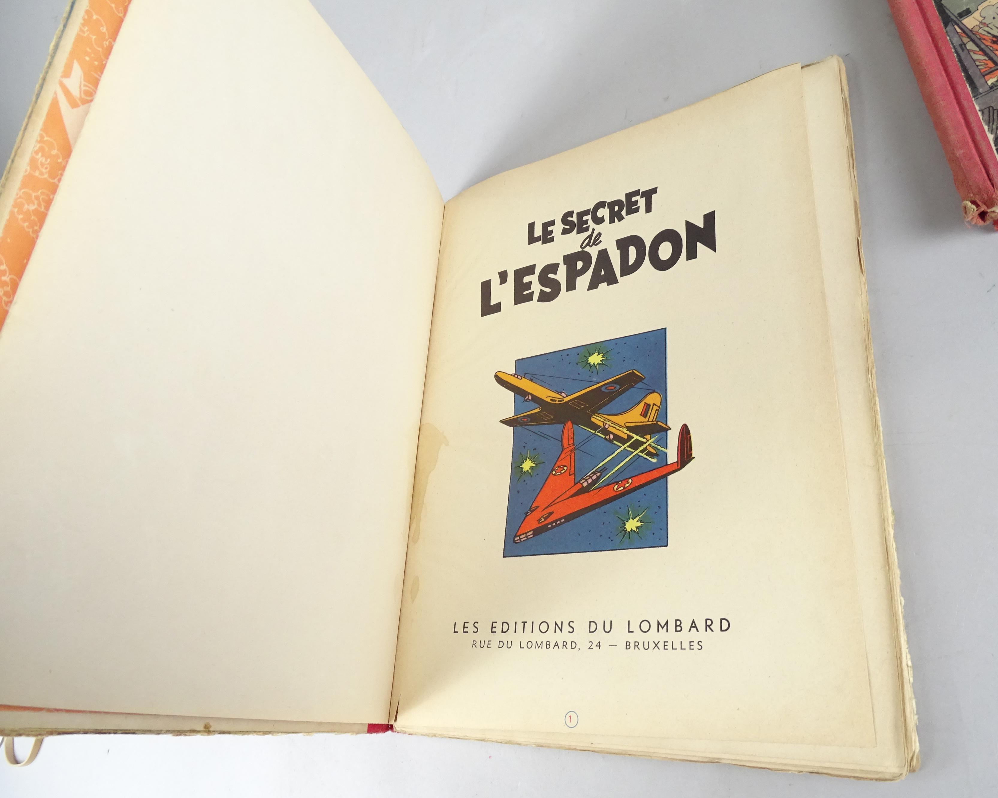 BD : Blake et Mortimer par Edgar P.Jacobs Ed.du Lombard EOB(3) : - secret de l'Espadon - T1 P01 1950 + T2 P05 1953 - marque jaune - P019 1956 (Etat moy , usur déch)