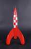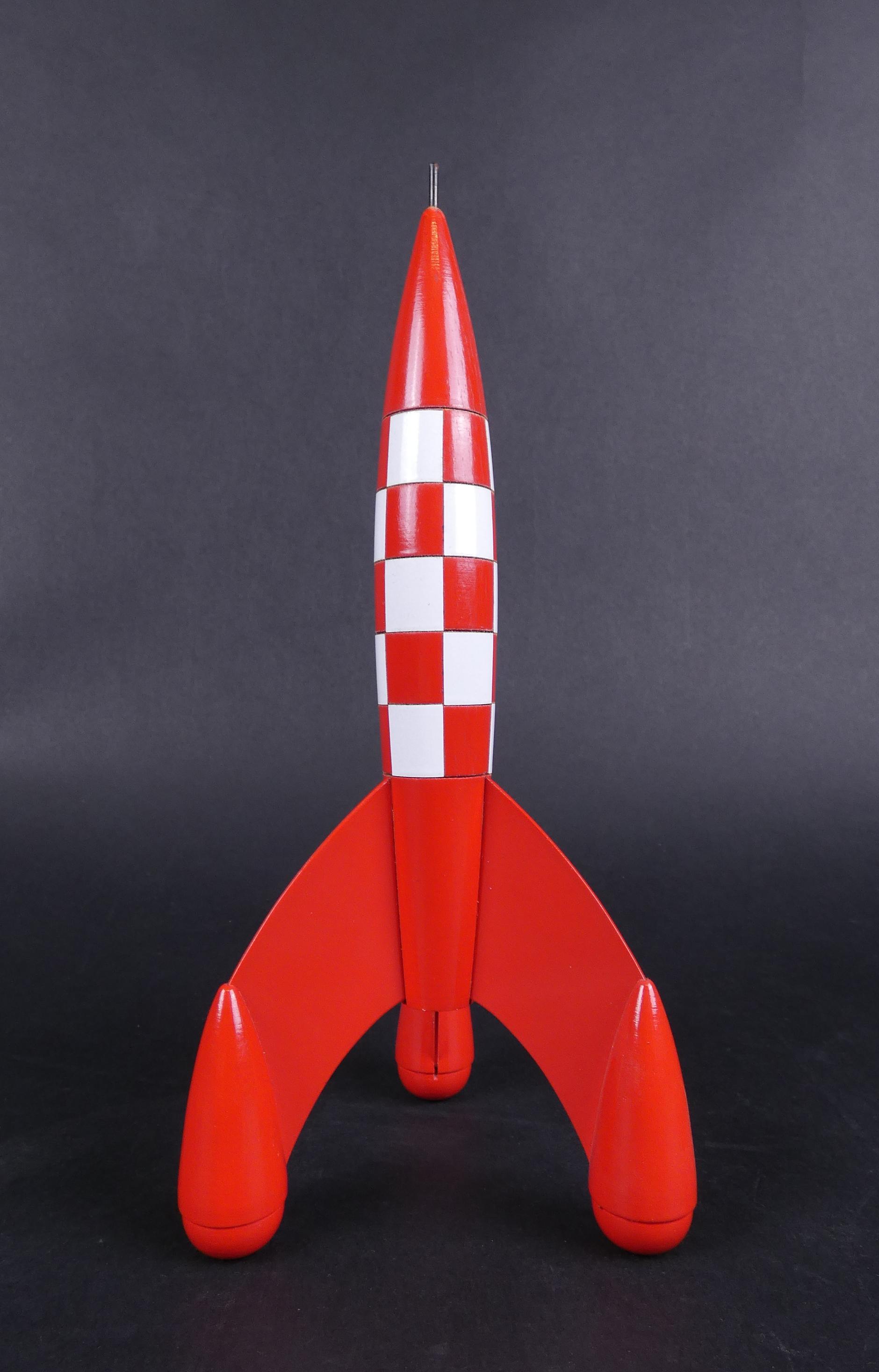 BD: Hergé Fusée Tintin en bois (craquelures) -Objectif Lune- datée 17.2.98 signée *AROUTCHEFF M.* (Michel) (1946, ) H:22cm