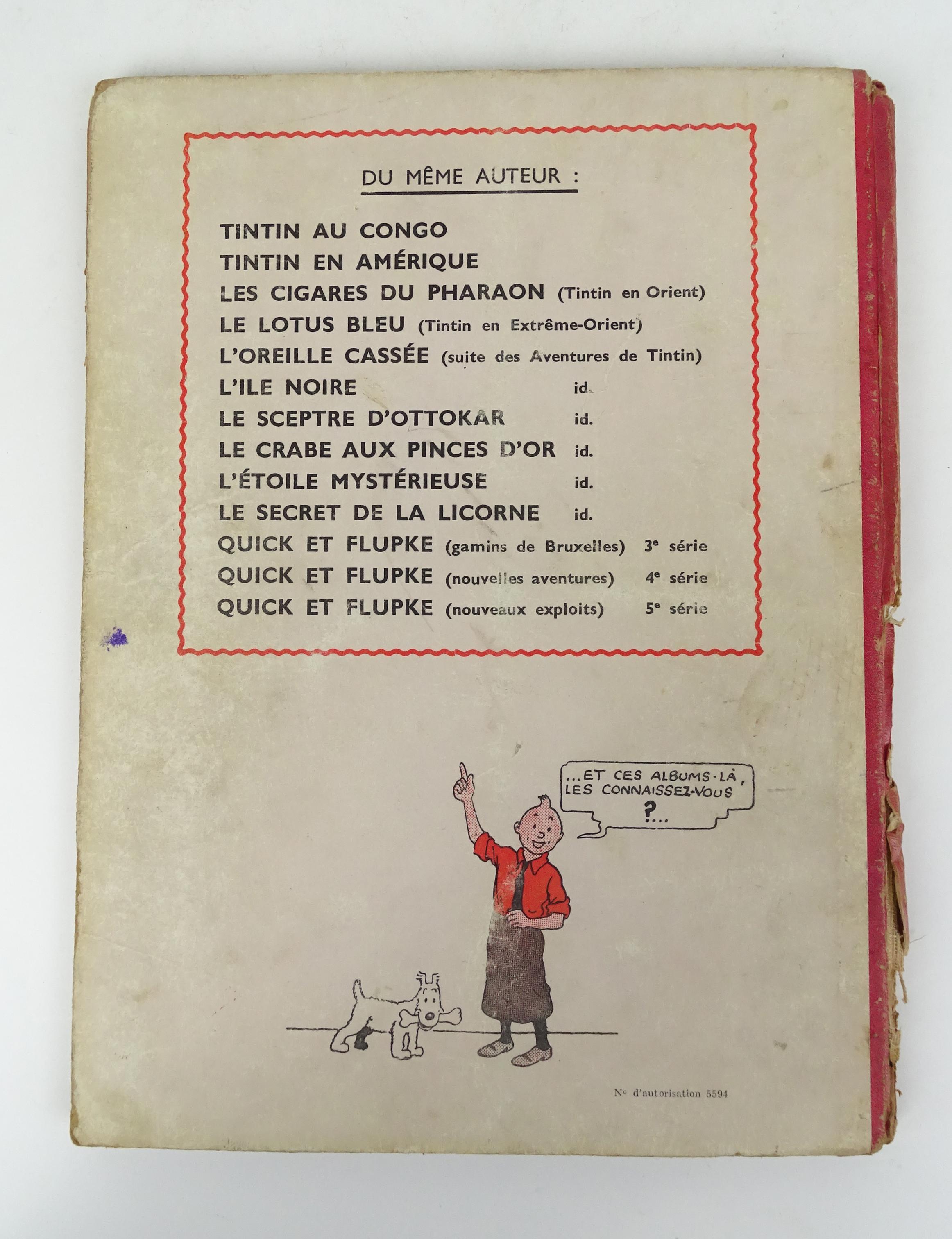 BD : Les Aventures de TINTIN Hergé Casterman Le Crabe aux Pinces d'Or EOC A22 1944 DR N° 5594 (Etat moyen , déchir , dos acc)