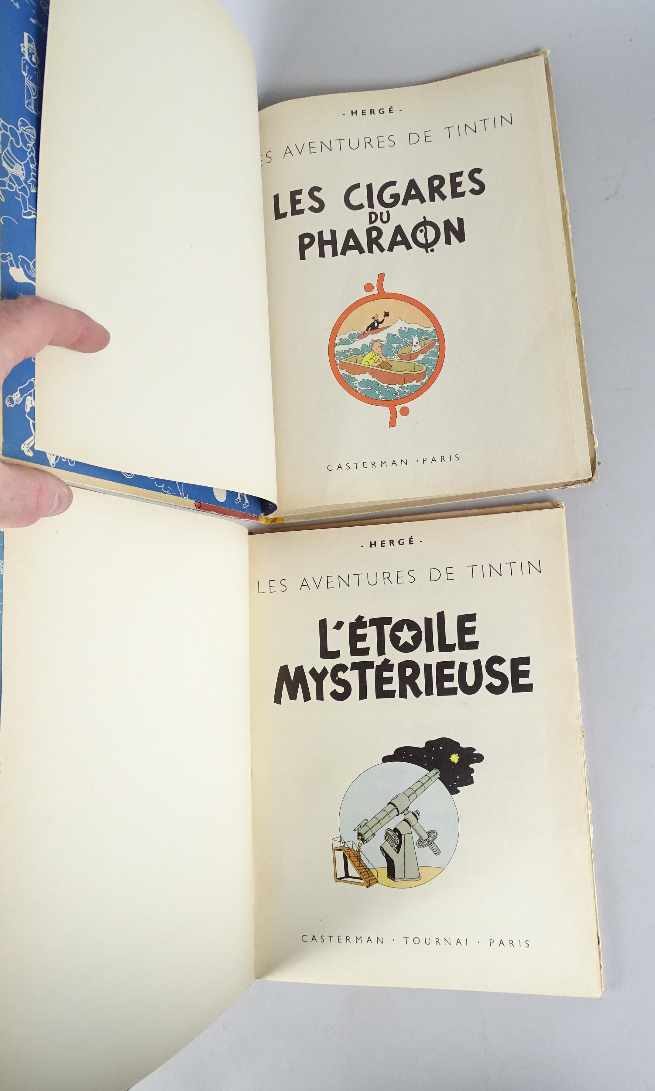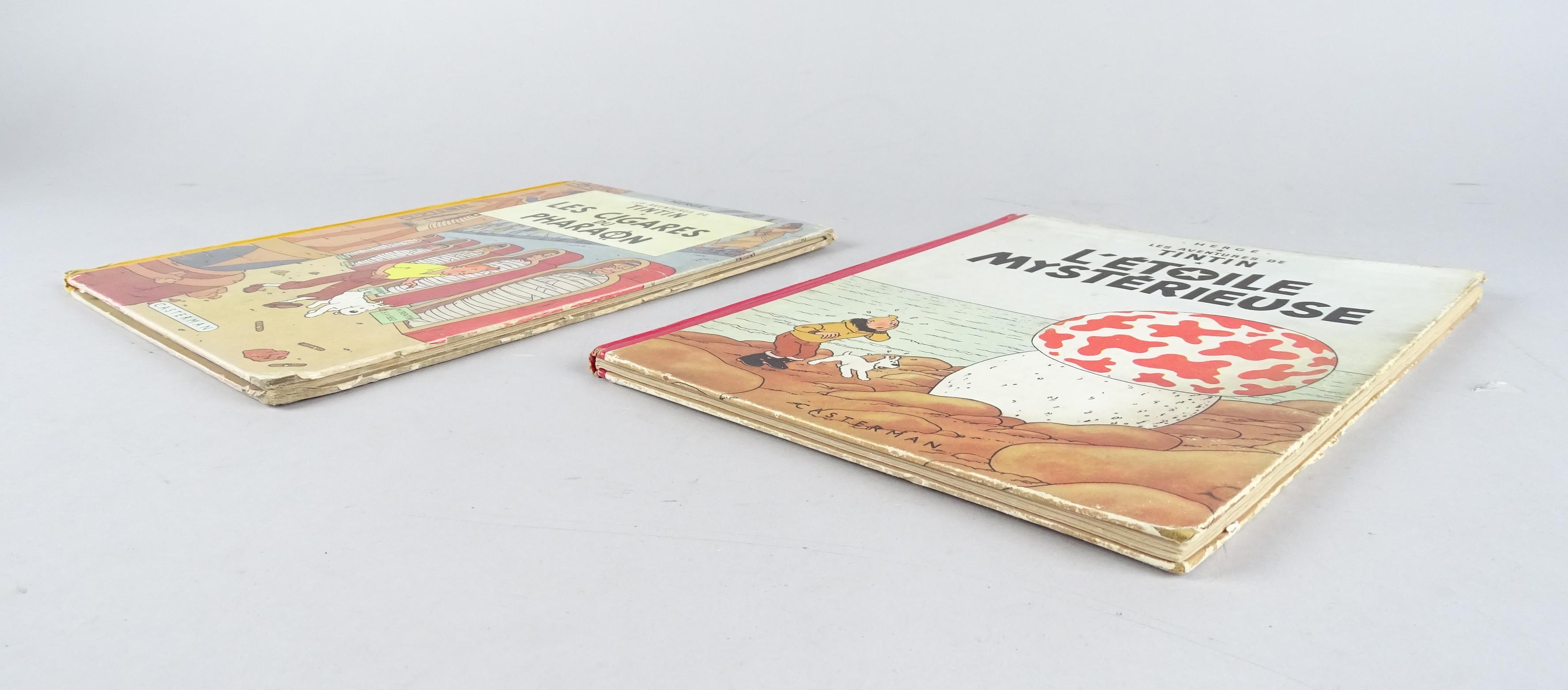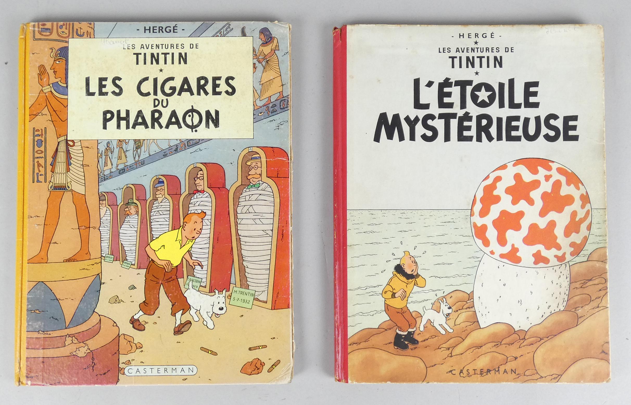 BD: Les aventures de Tintin Hergé éd Casterman (usure ext, int frais) (2pcs): Cigares du Pharaon EO française B14 1955 + Etoile Mystérieuse B9 1954 (BDM25: 530)