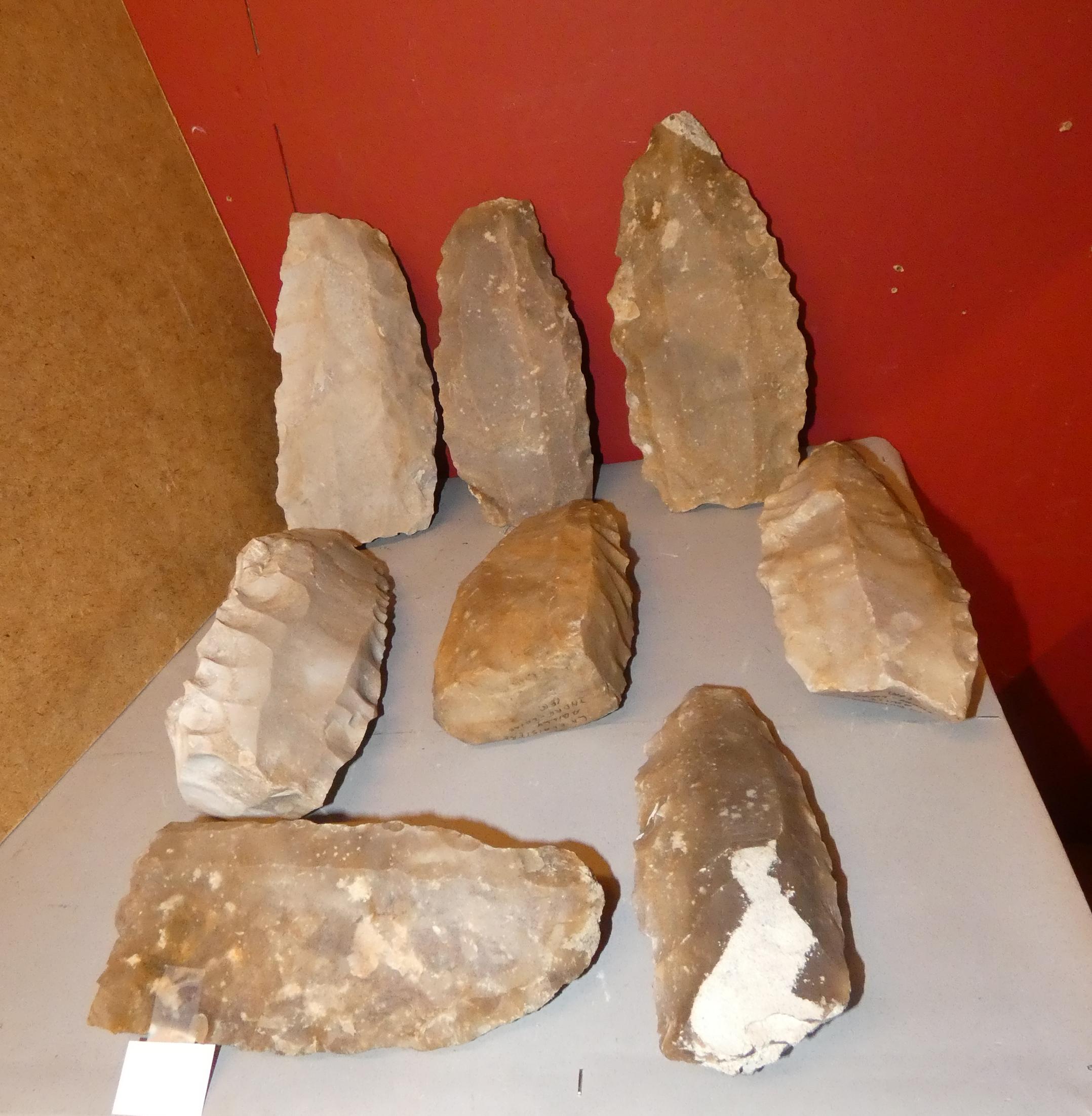Objet: 8 Silex taillés: nucleus / livres de beurre Néolithique provenance ABILLY Indre-Loire France H:de 20cm à 29cm