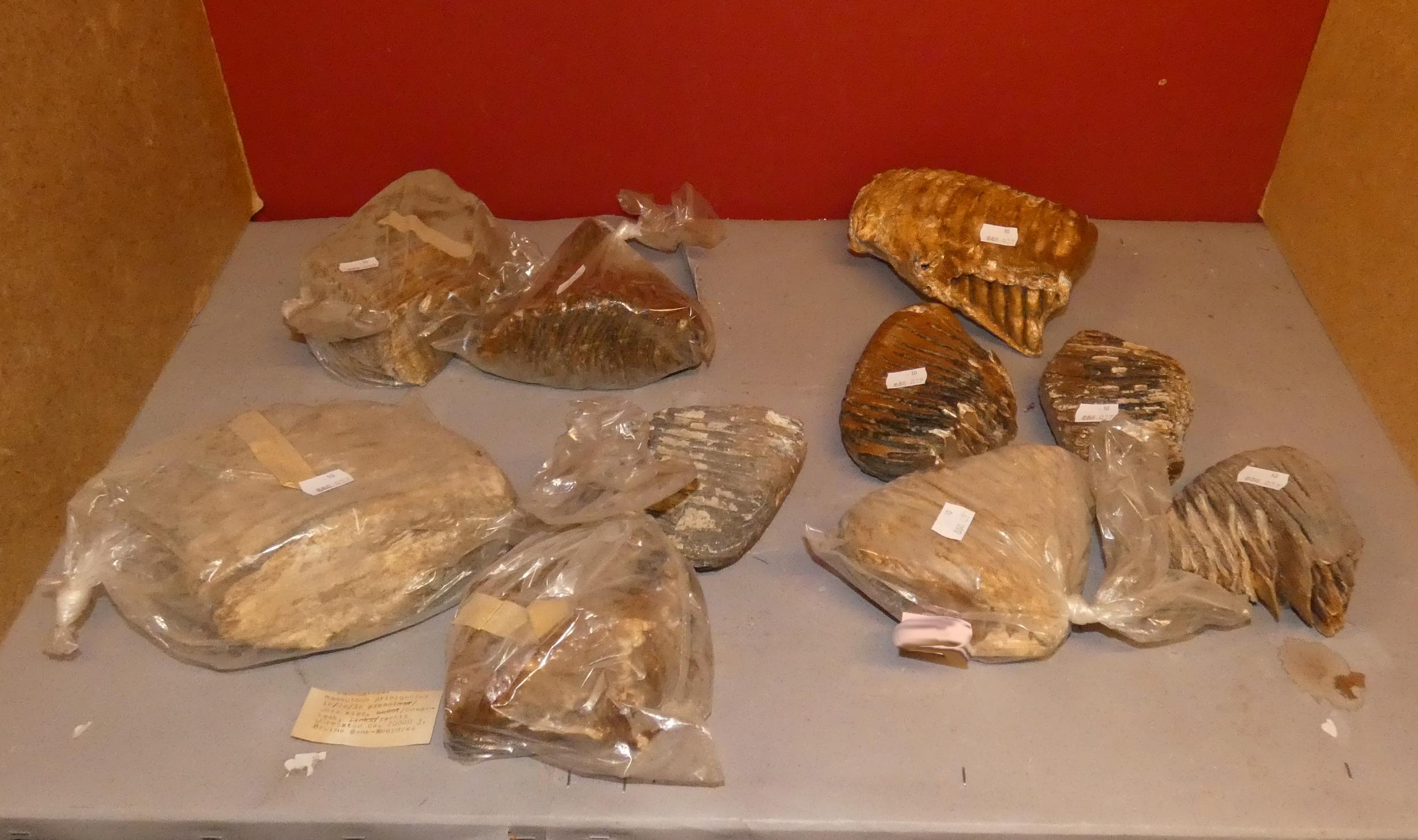 Objet : 10 dents fossilisées de mammouth (Elephas primigenius) époque pléistocène Mer du nord