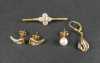 Bijoux en or jaune 18K P: 5,2g (broche, paire de boucles d'oreilles sertie de diamants et 2boucles d'oreilles dépareillées)