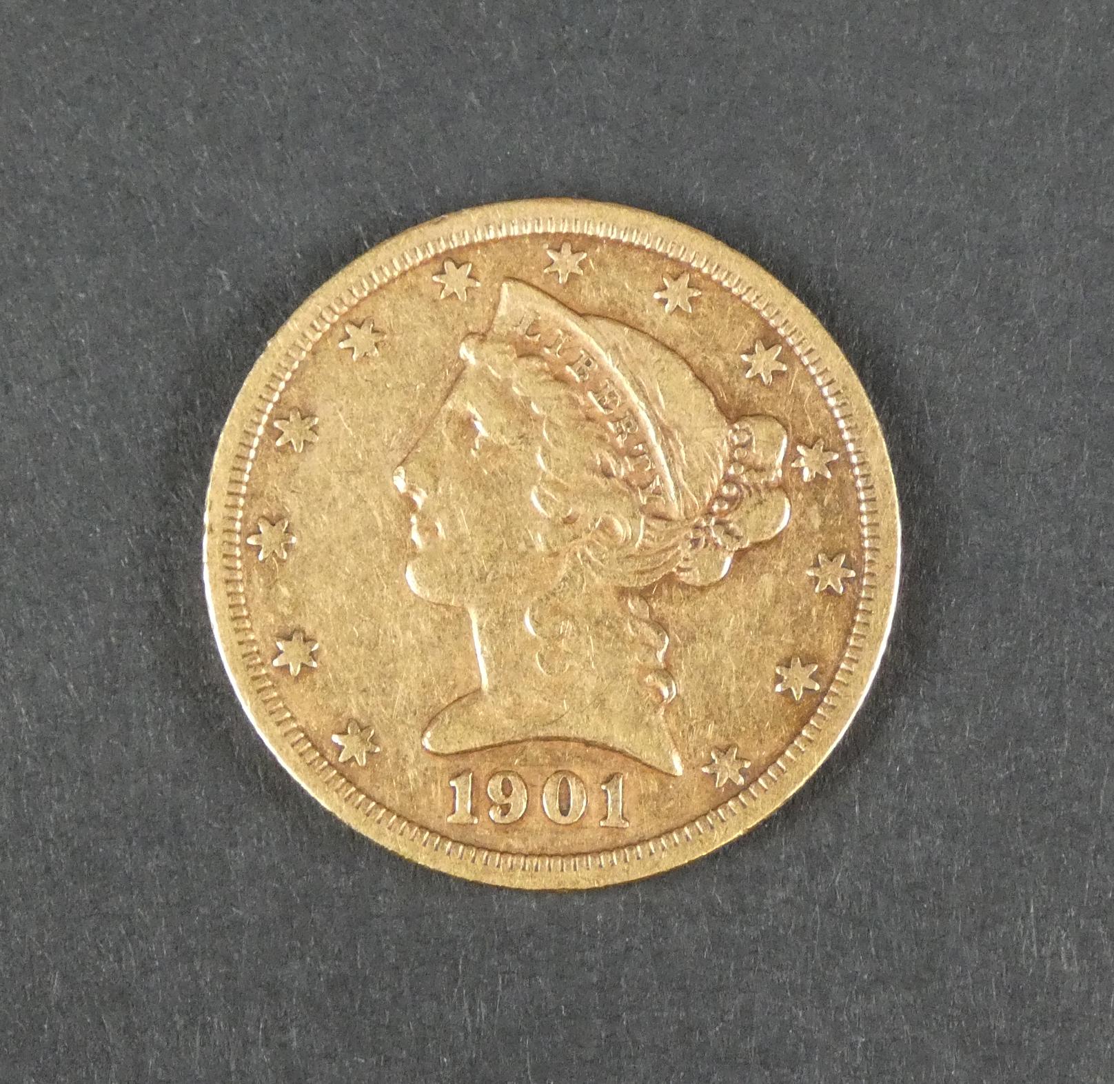 Collection: Pièce de monnaie de 5 dollars Or type -Liberty- de 8,35gX0,900= 7,75g d'or pur