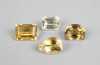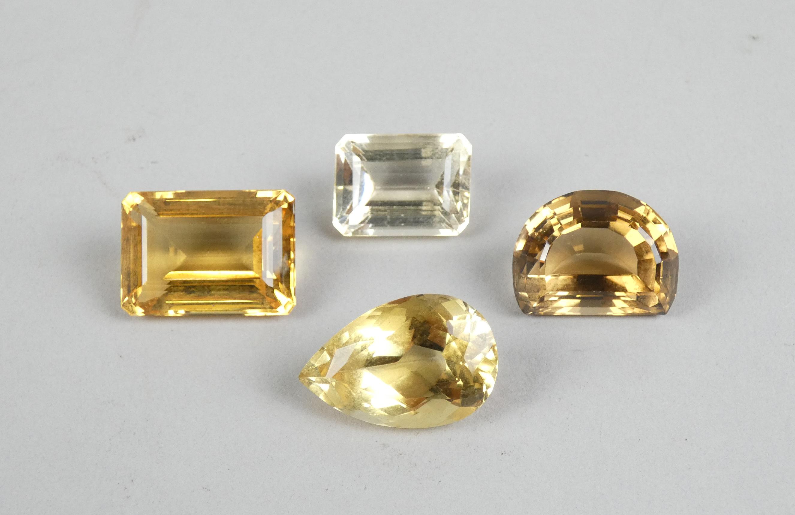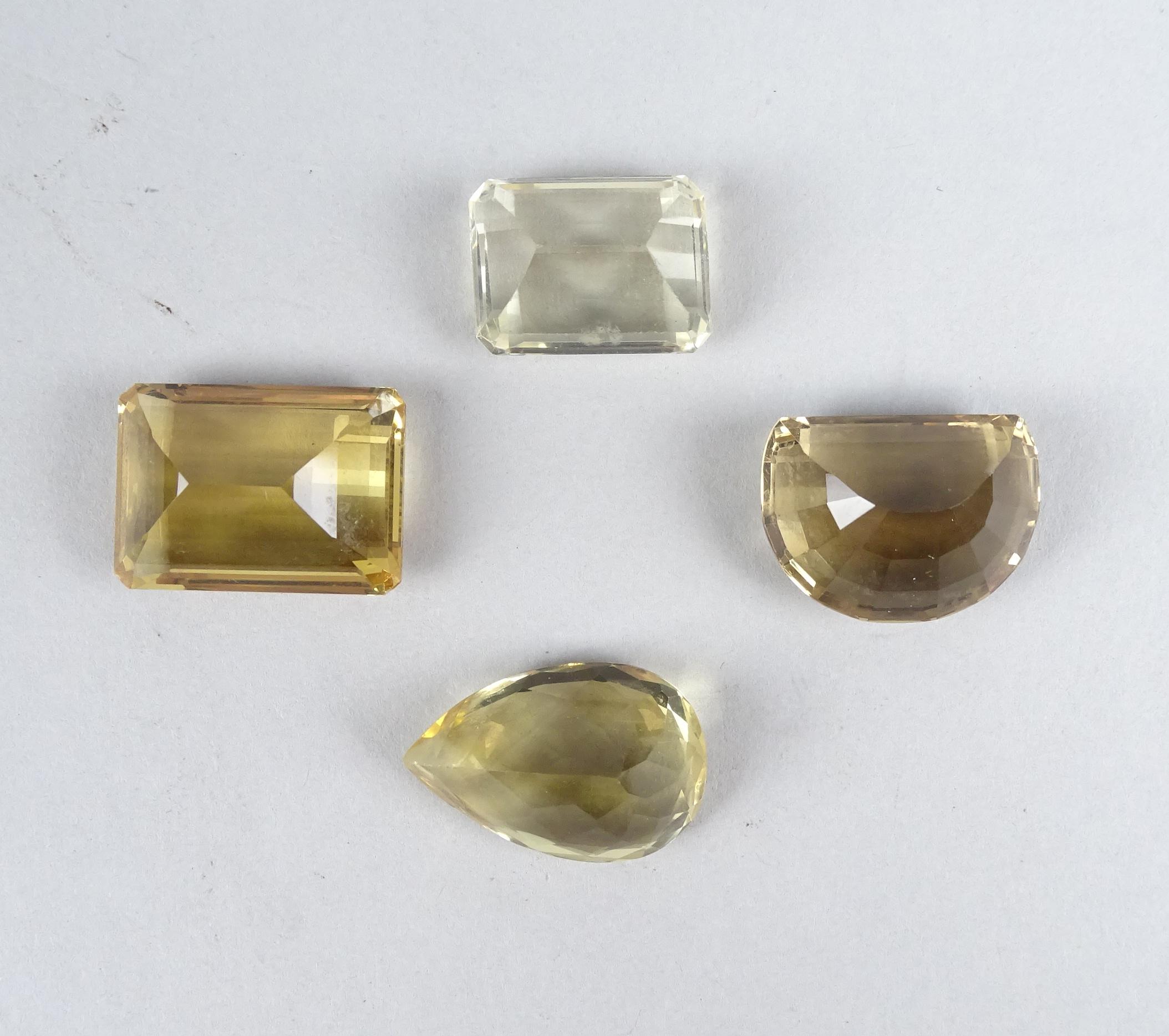 Bijou: 4 quartz citrines sur papier (non serties) différentes tailles et intensités de couleurs (L:23mm, 19mm, 24mm, 16mm)