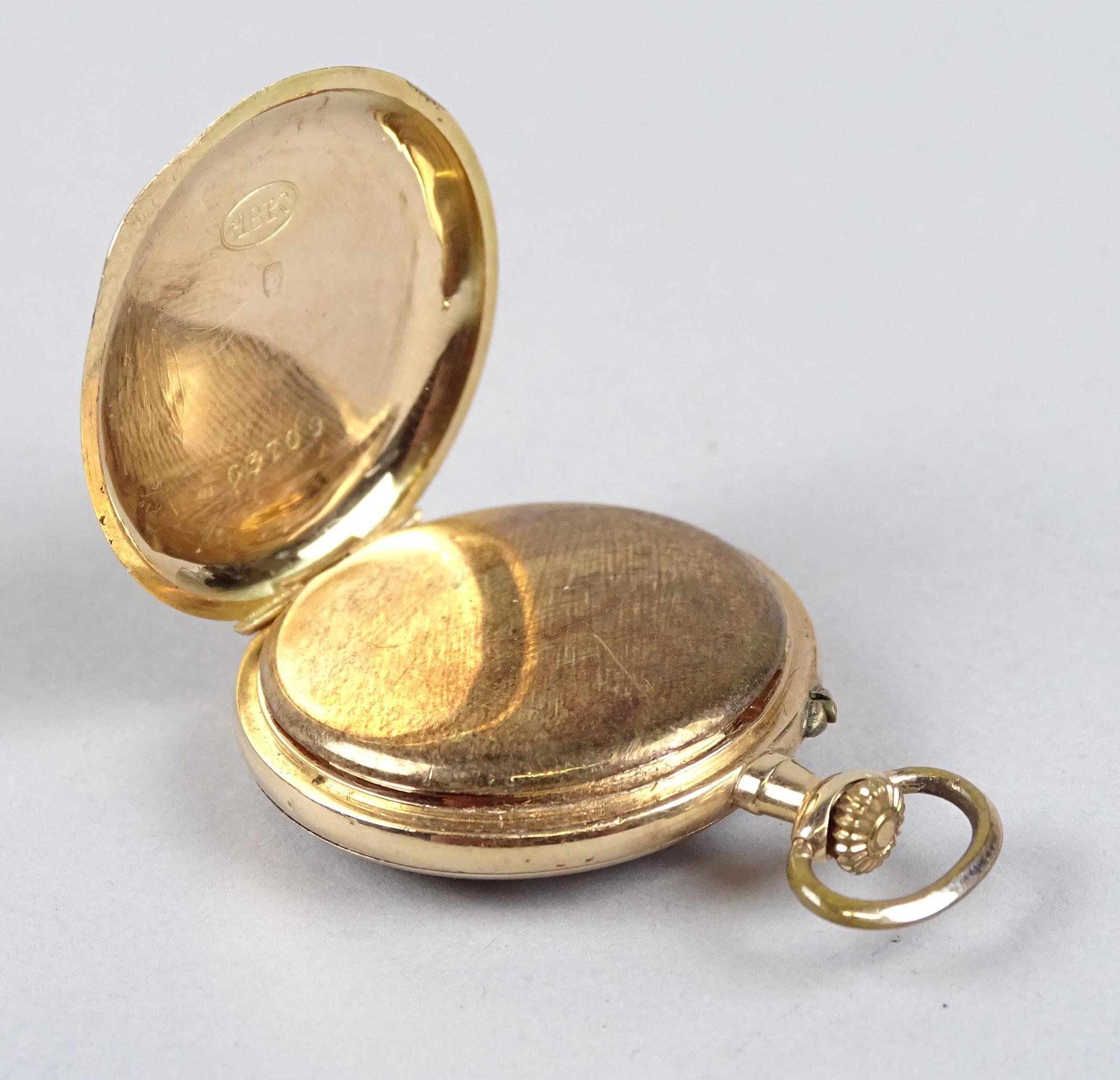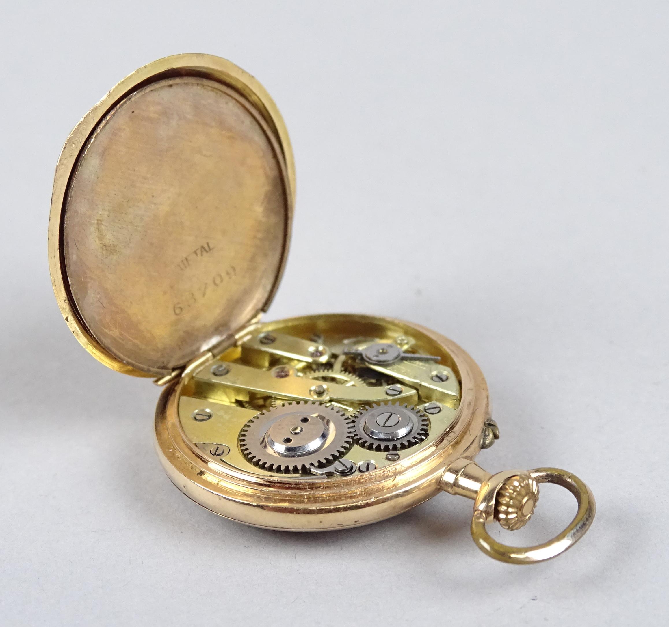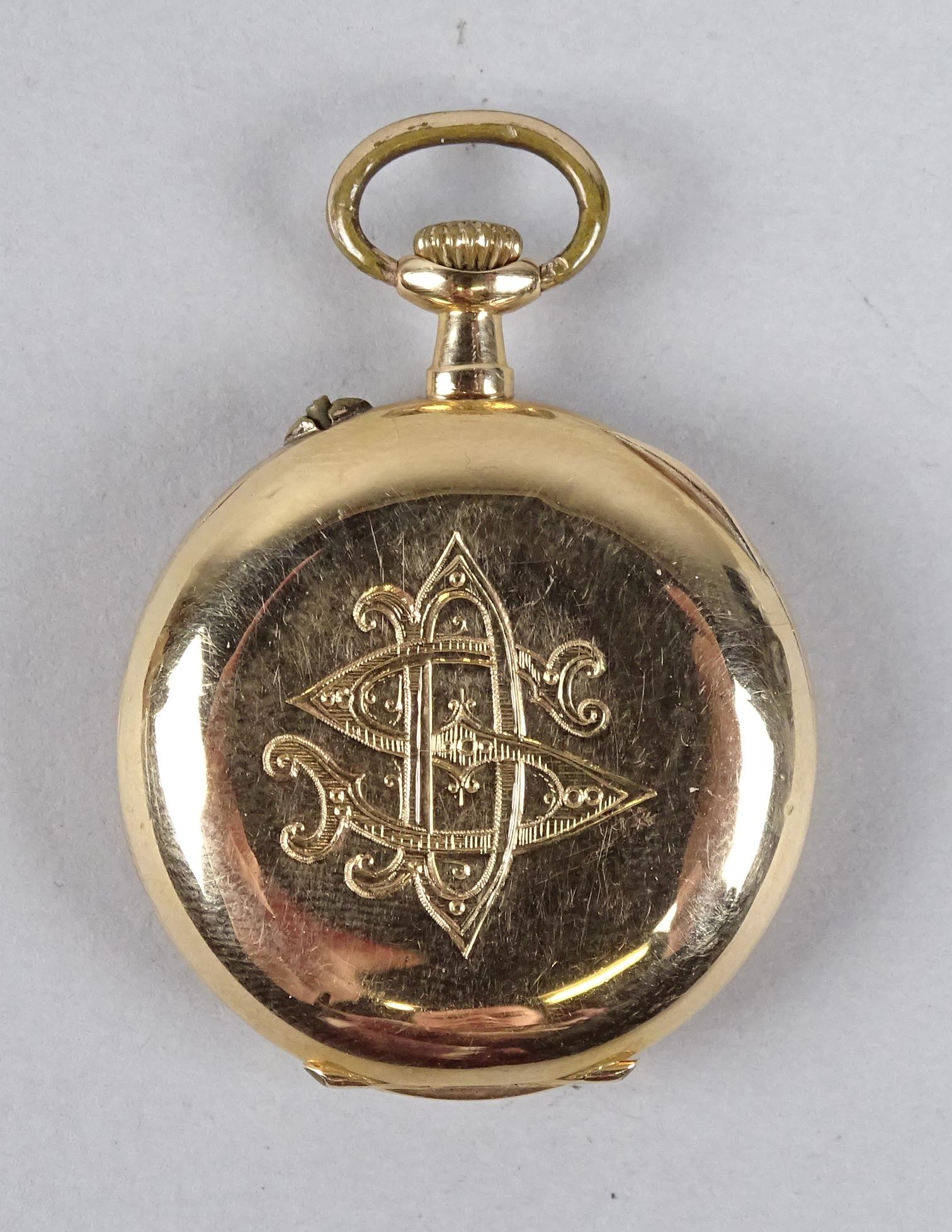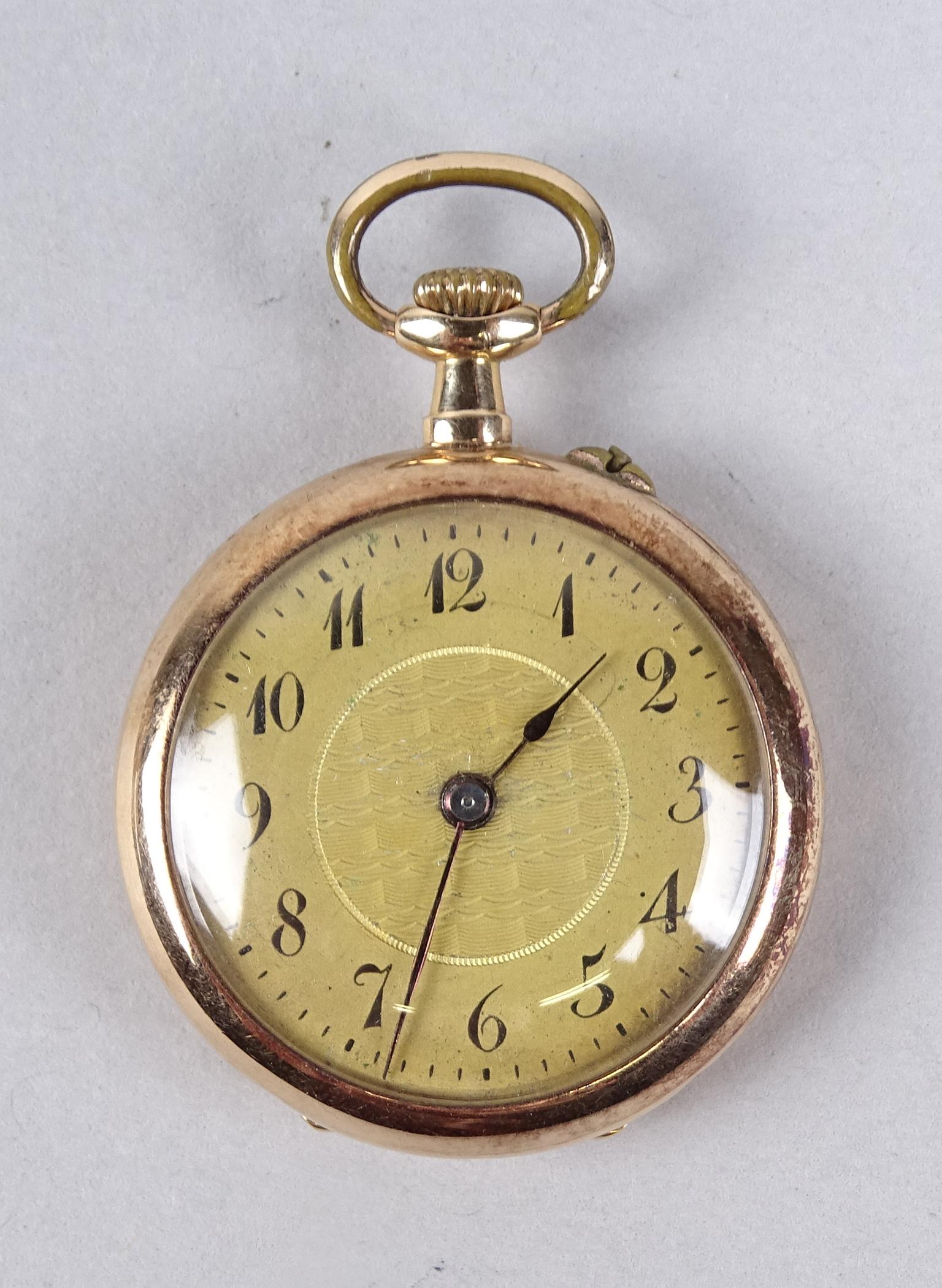 Bijou: Montre de gousset de col cuvette extérieure gravée en or jaune 18K mouvement à remontoir (en état) P: 15,8g D:28mm