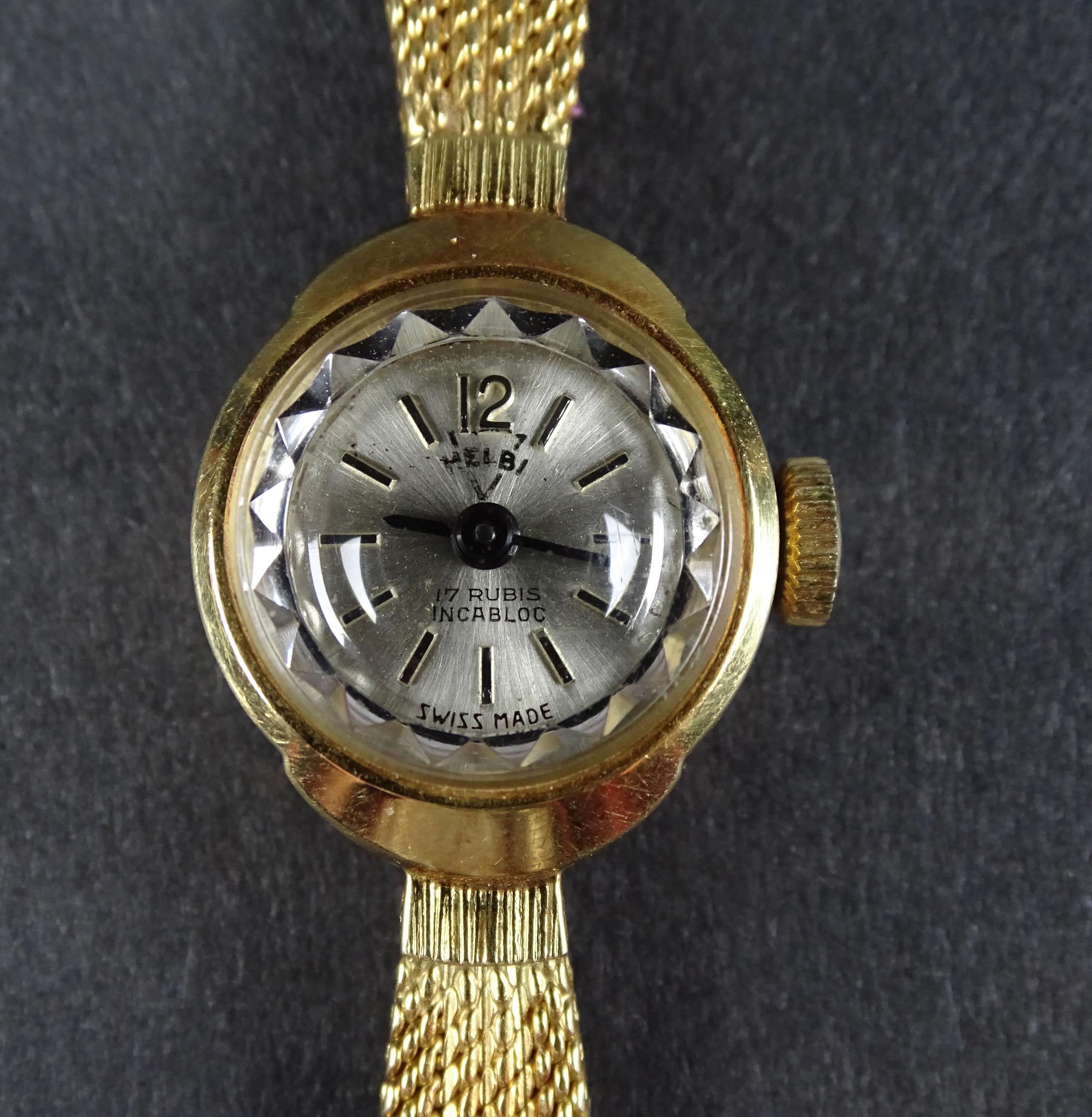 Bijou: Montre bracelet de dame HELBI en or jaune 18K mouvement à remontoir (en état) Pbrut: 17,9g D: 8mm L: 17,5cm